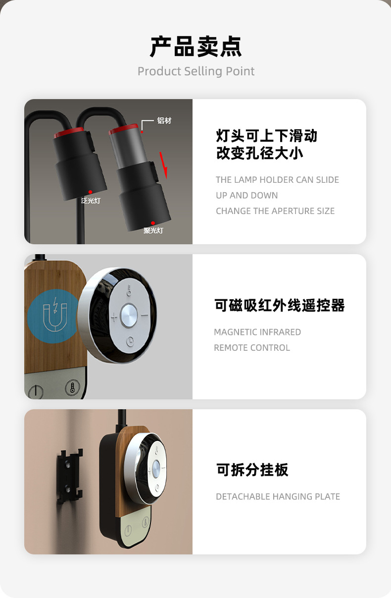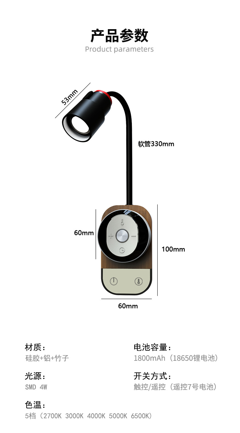 새로운 다기능 침대 옆 독서 벽 램프 크로스 보더 창조적 인 자기 원격 제어 침실 연구 눈 보호 디밍 테이블 램프