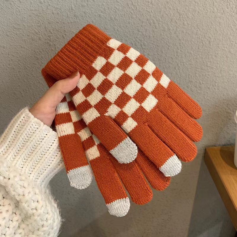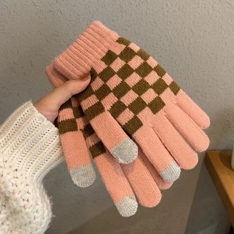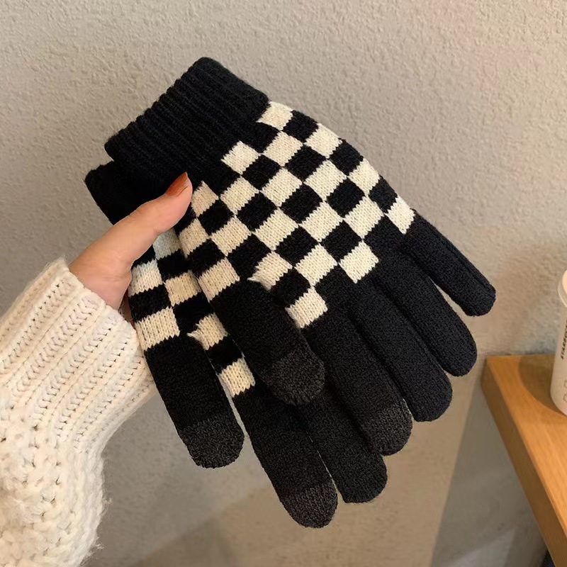 남성과 여성을위한 바둑판 니트 울 장갑 따뜻한 손가락 장갑을 타고 겨울 터치 스크린 학생