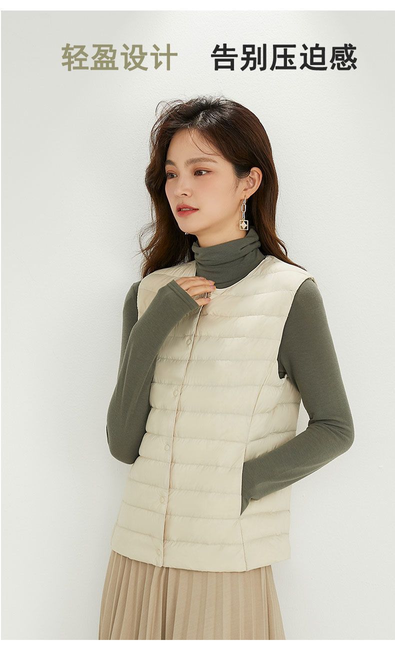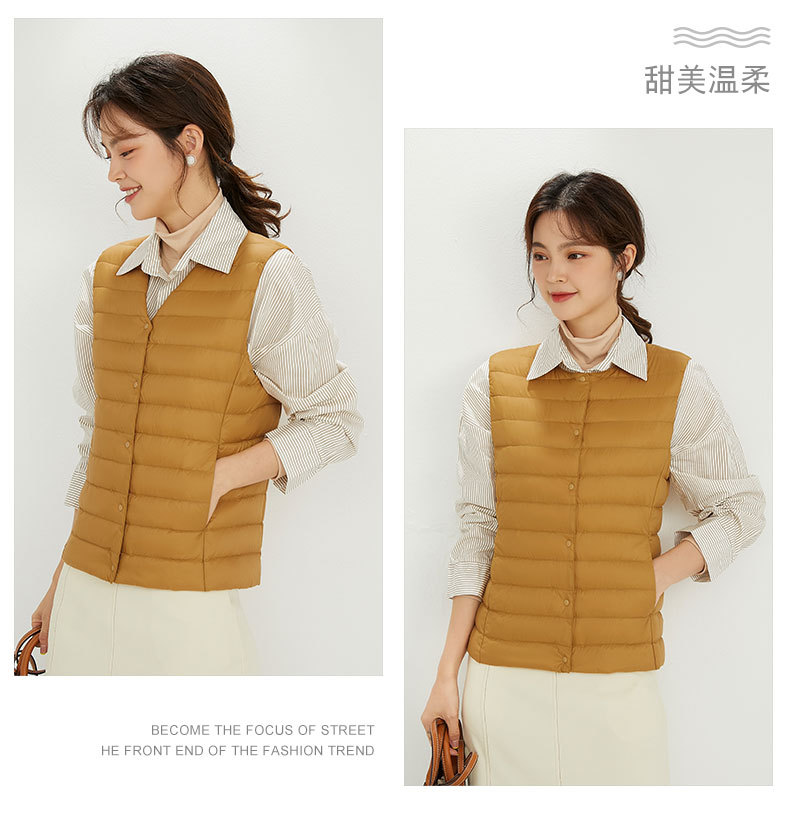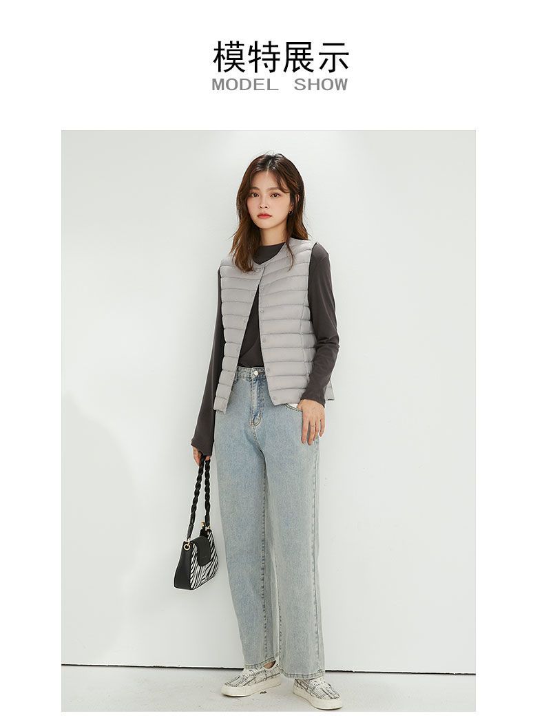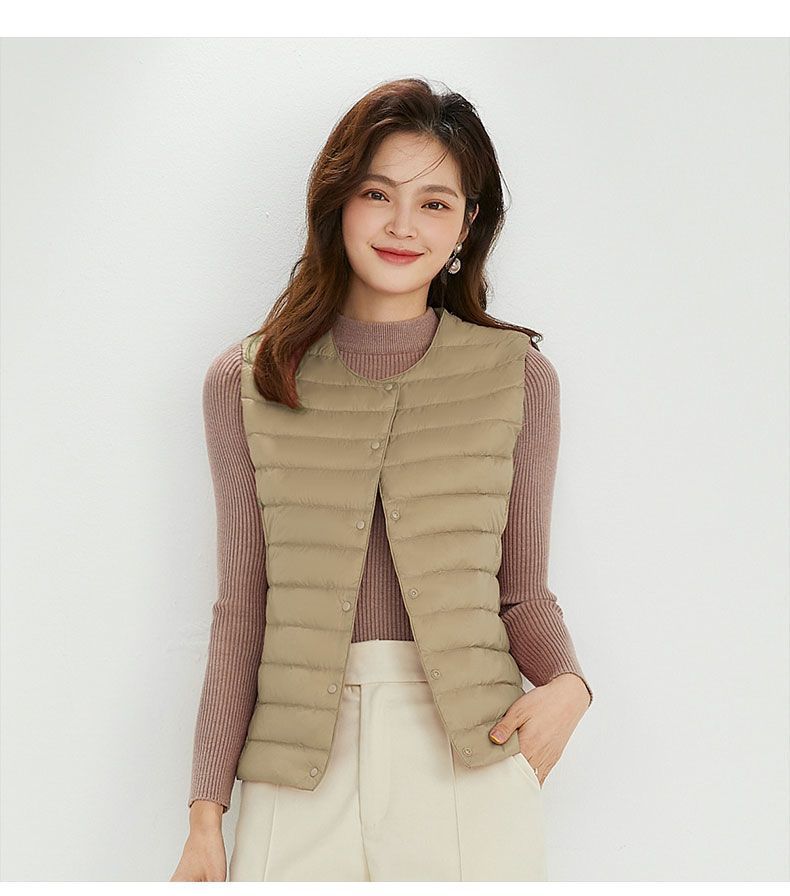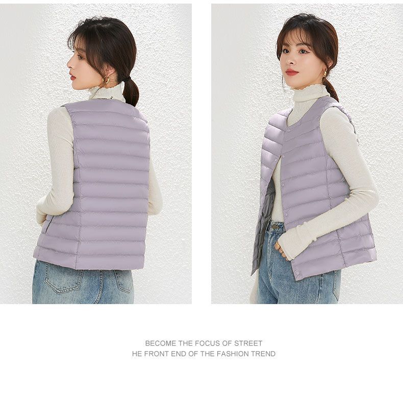 국경 간 TikTok 새로운 여성 칼라리스 다운 라이너 조끼 V 넥 경량 따뜻한 재킷 양복 조끼 라운드 넥