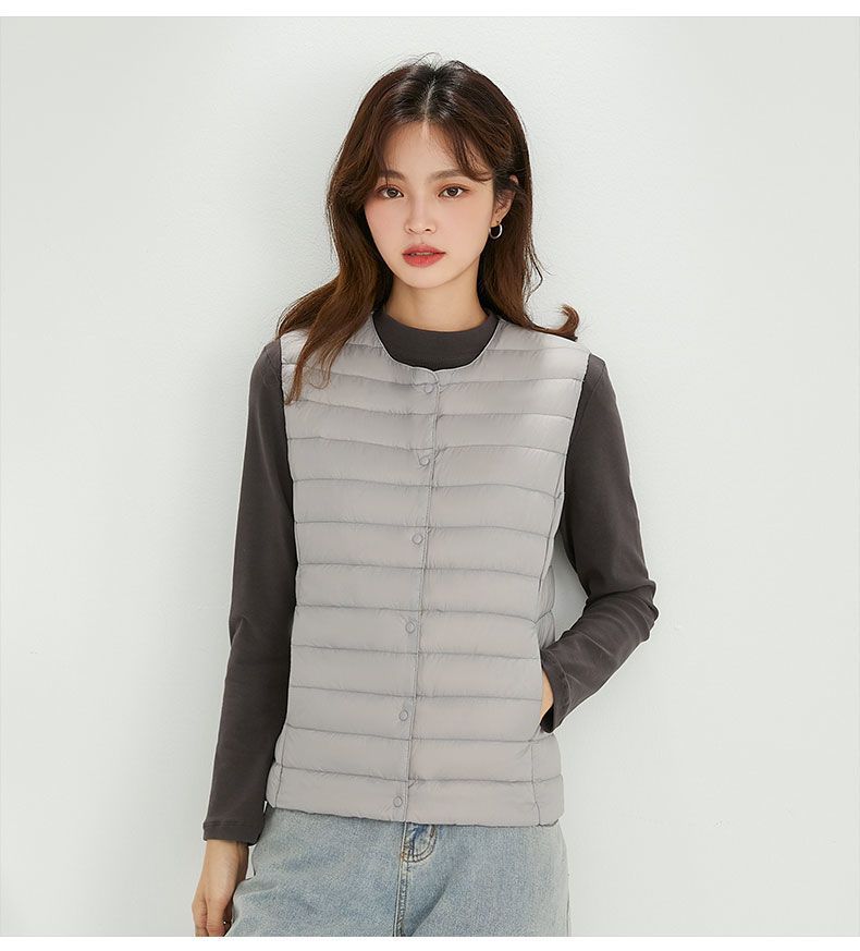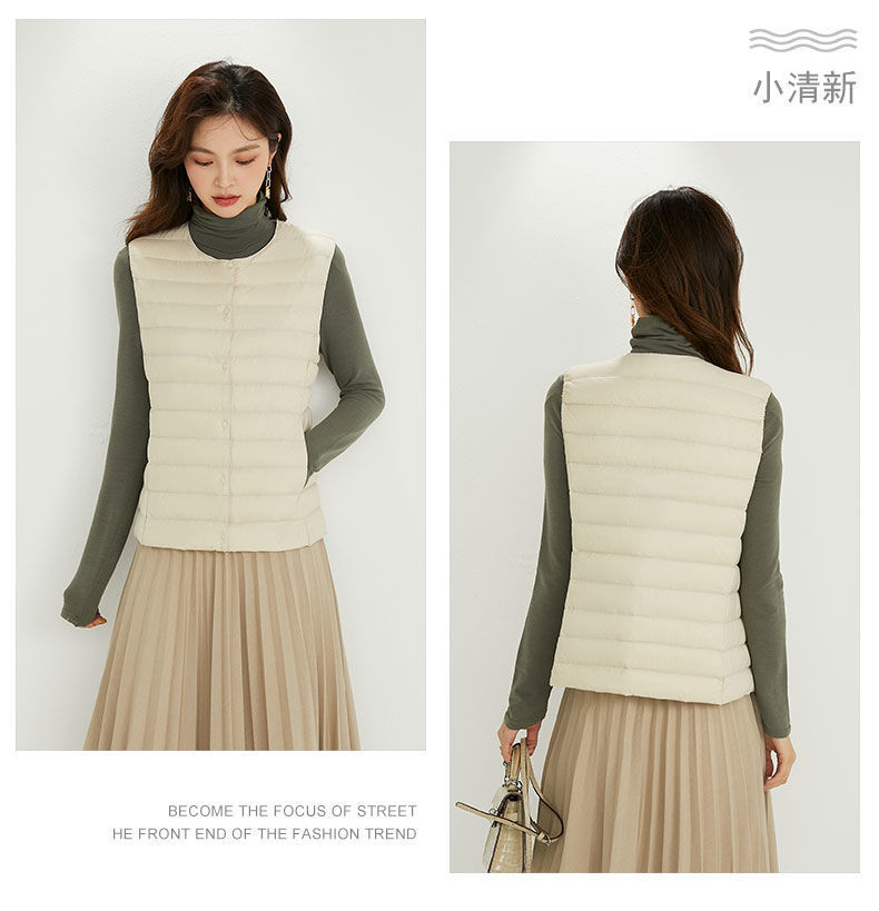 국경 간 TikTok 새로운 여성 칼라리스 다운 라이너 조끼 V 넥 경량 따뜻한 재킷 양복 조끼 라운드 넥스토어 가기