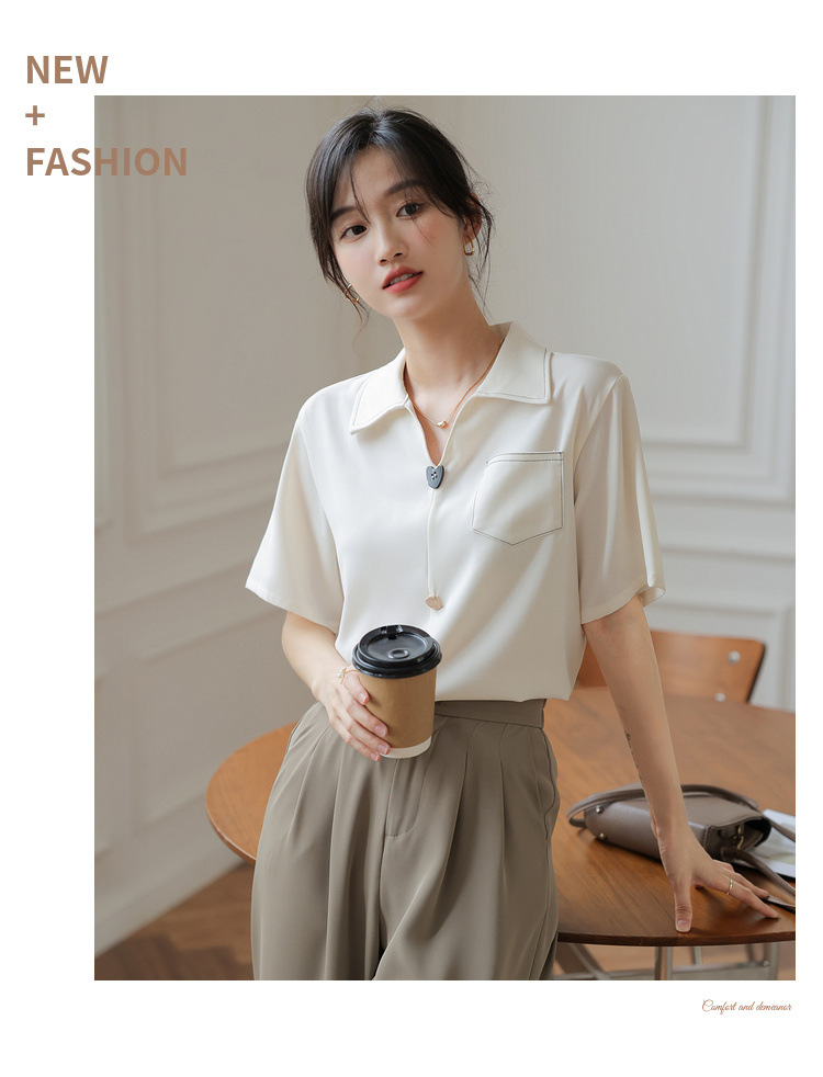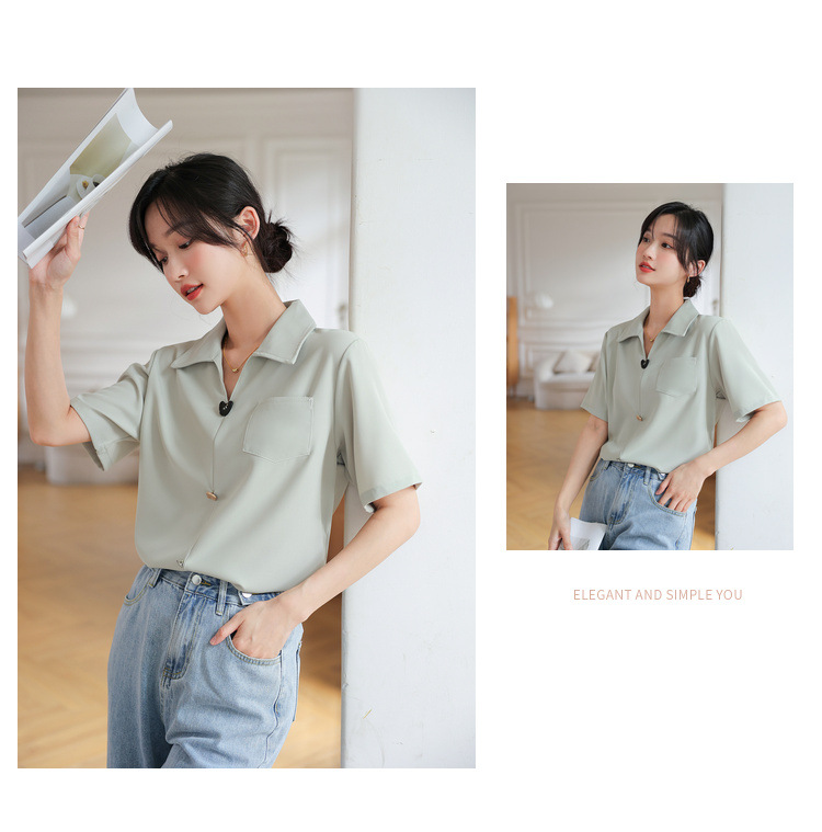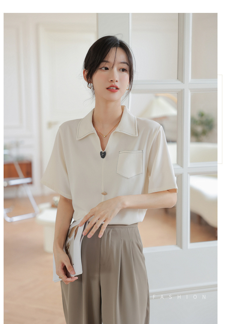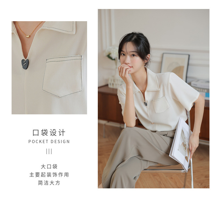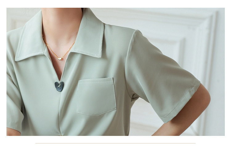 프랑스 스타일 V-넥 쉬폰 반팔 셔츠 여름 탑 디자인 틈새 여성 캐주얼 스타일 통근 우아한 셔츠