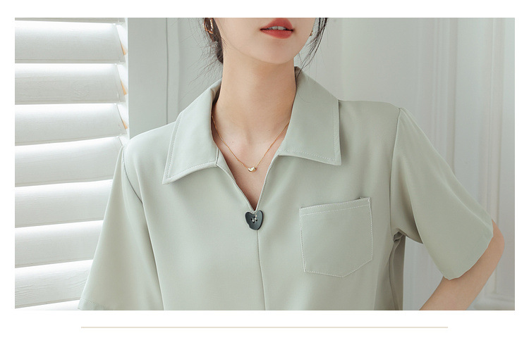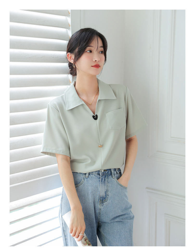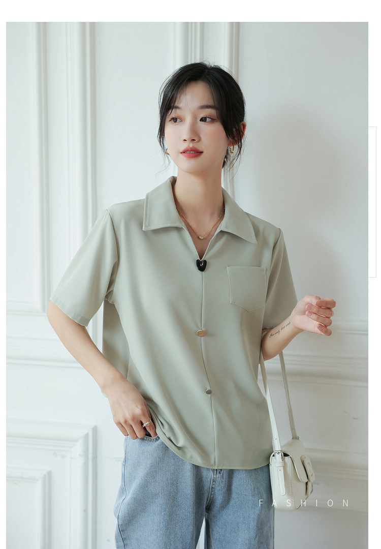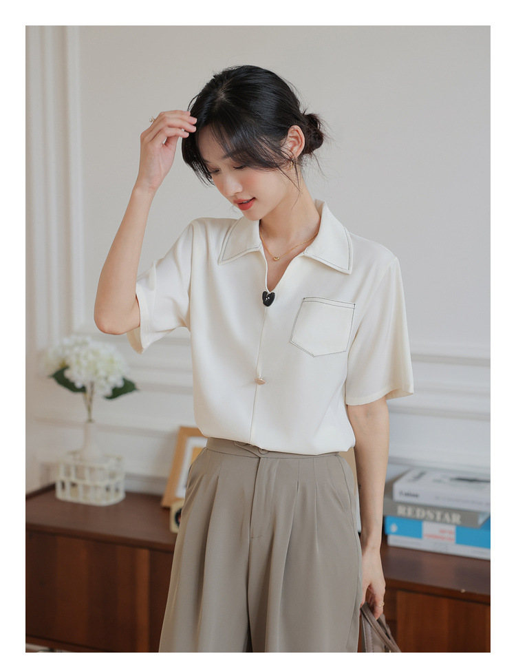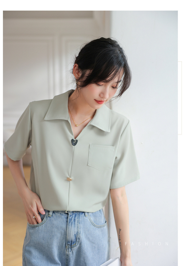 프랑스 스타일 V-넥 쉬폰 반팔 셔츠 여름 탑 디자인 틈새 여성 캐주얼 스타일 통근 우아한 셔츠