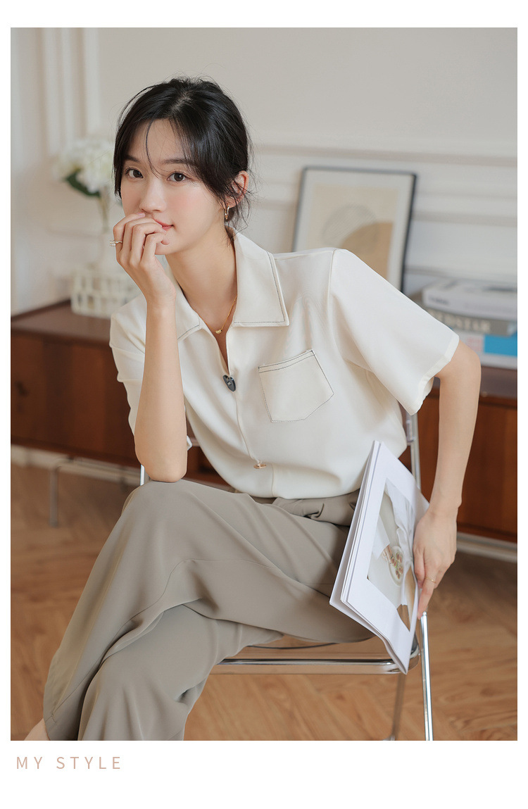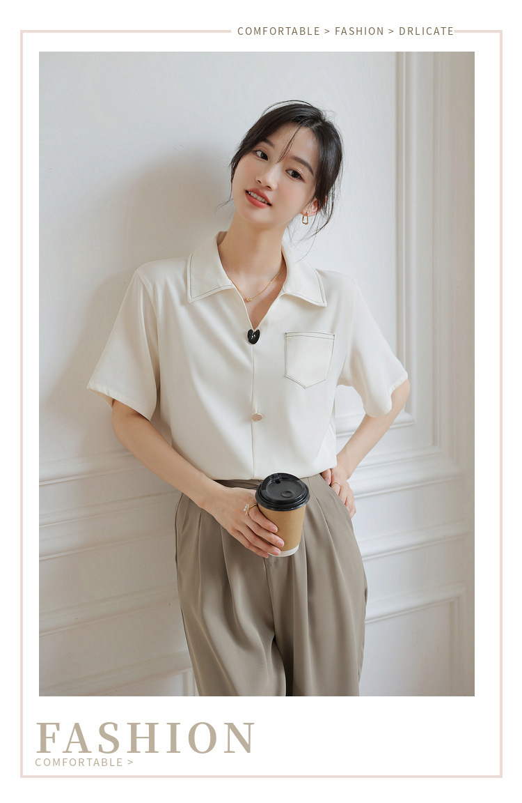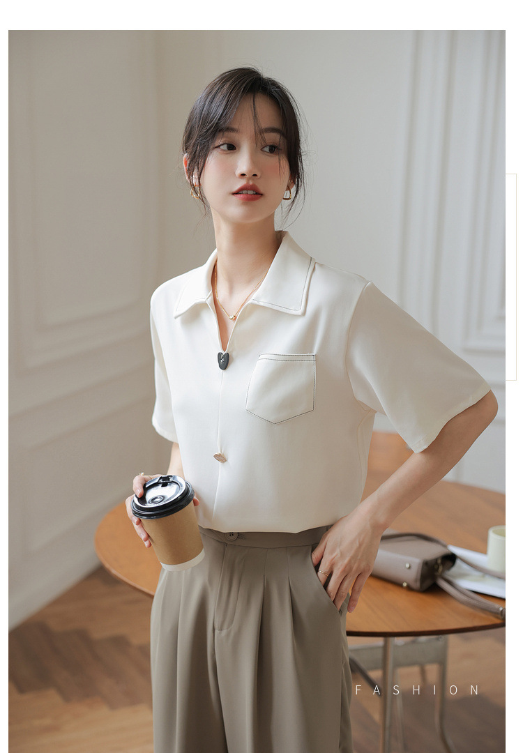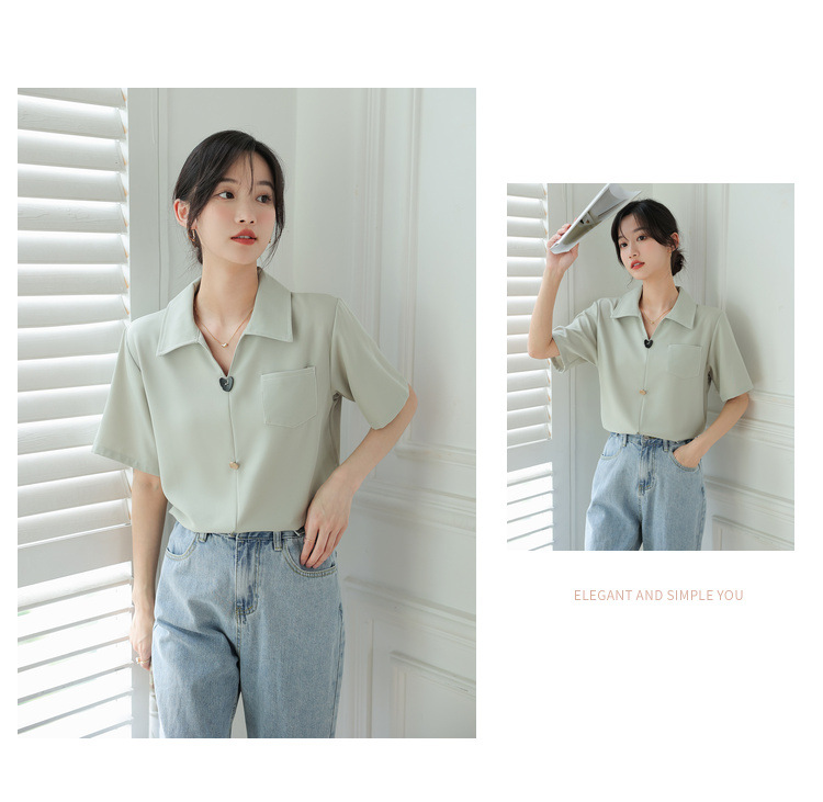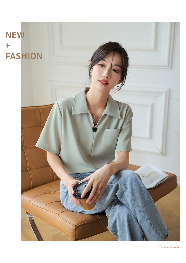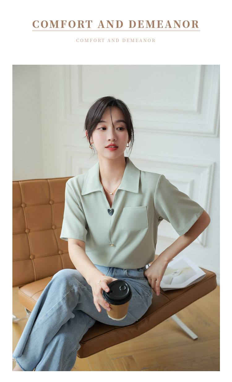 프랑스 스타일 V-넥 쉬폰 반팔 셔츠 여름 탑 디자인 틈새 여성 캐주얼 스타일 통근 우아한 셔츠스토어 가기