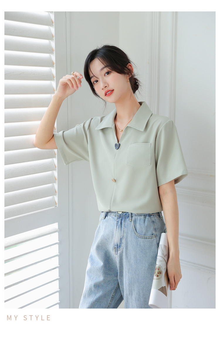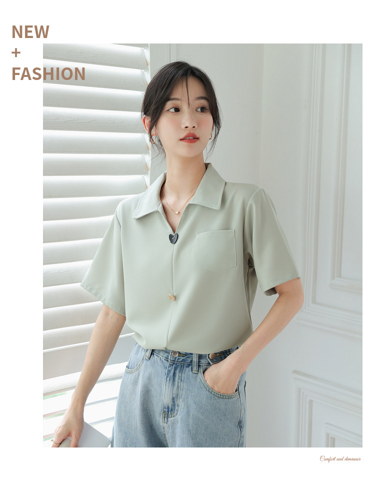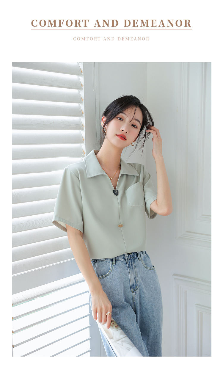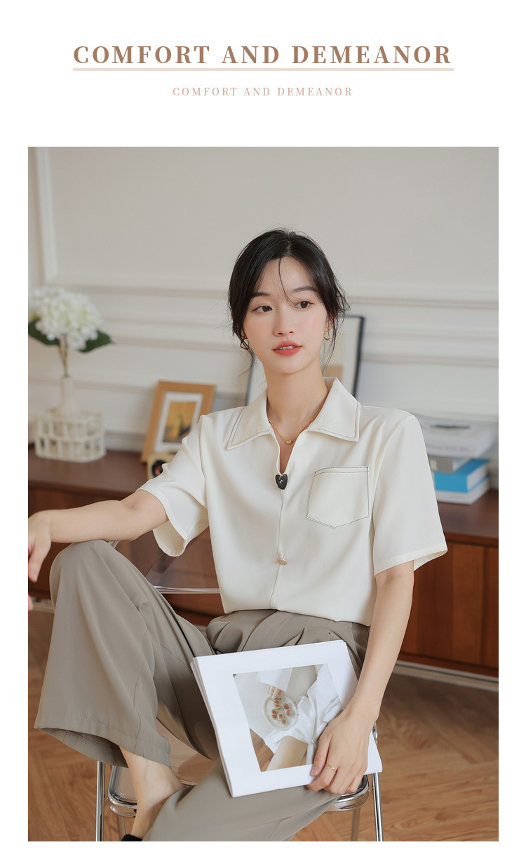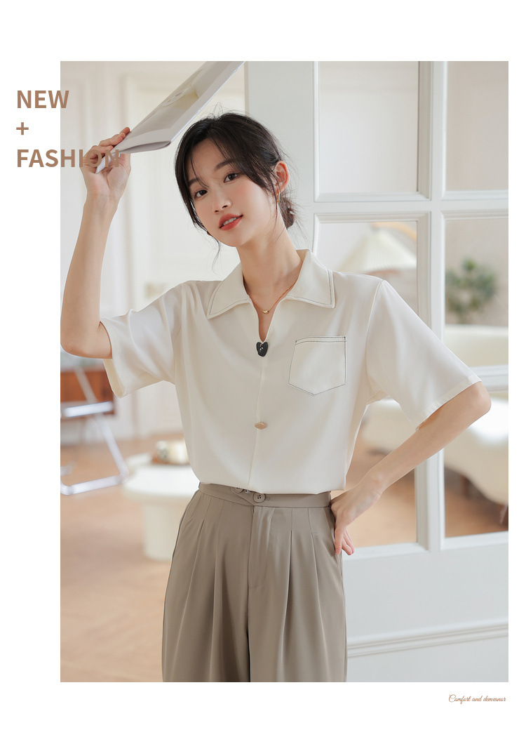 프랑스 스타일 V-넥 쉬폰 반팔 셔츠 여름 탑 디자인 틈새 여성 캐주얼 스타일 통근 우아한 셔츠스토어 가기