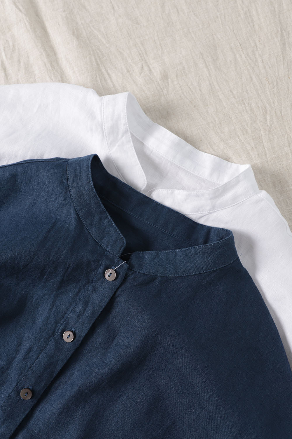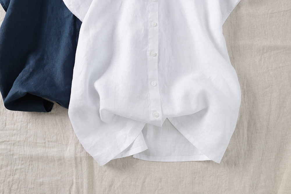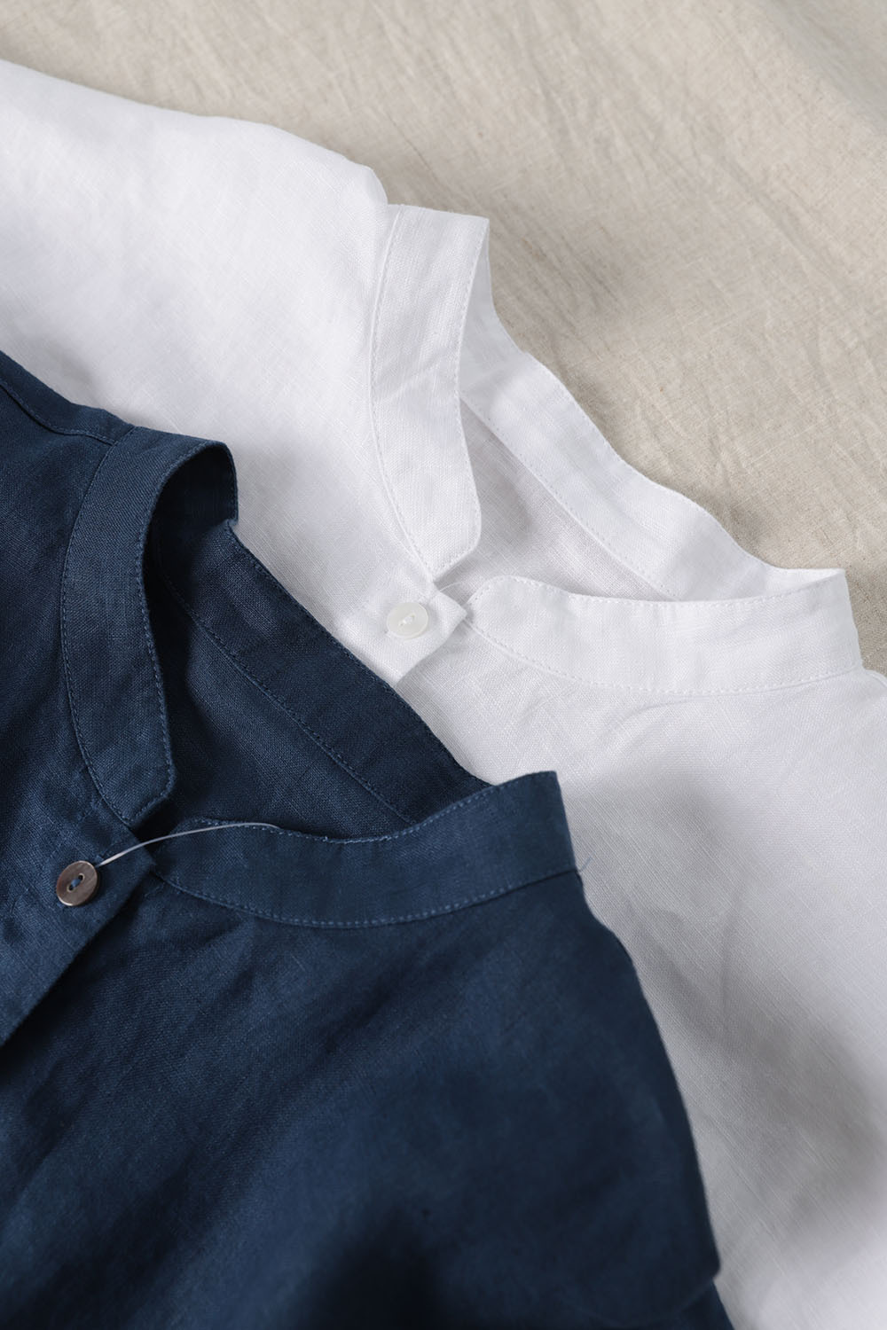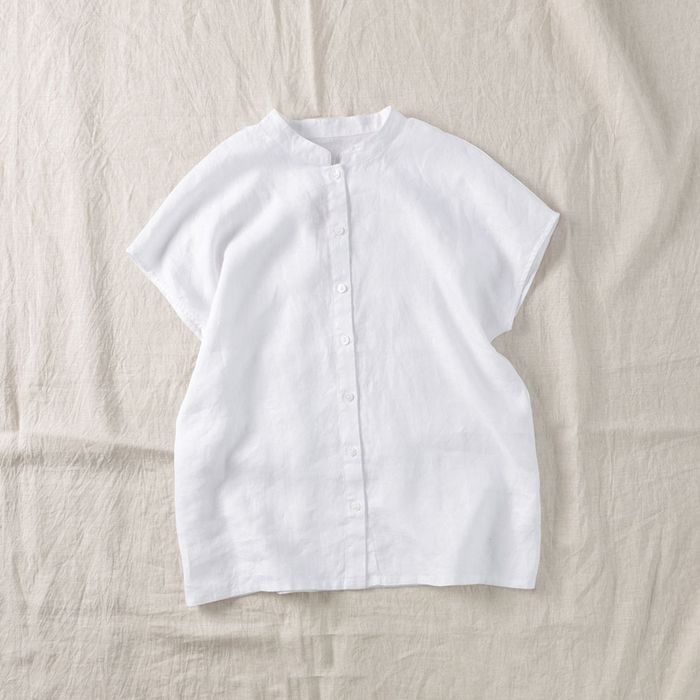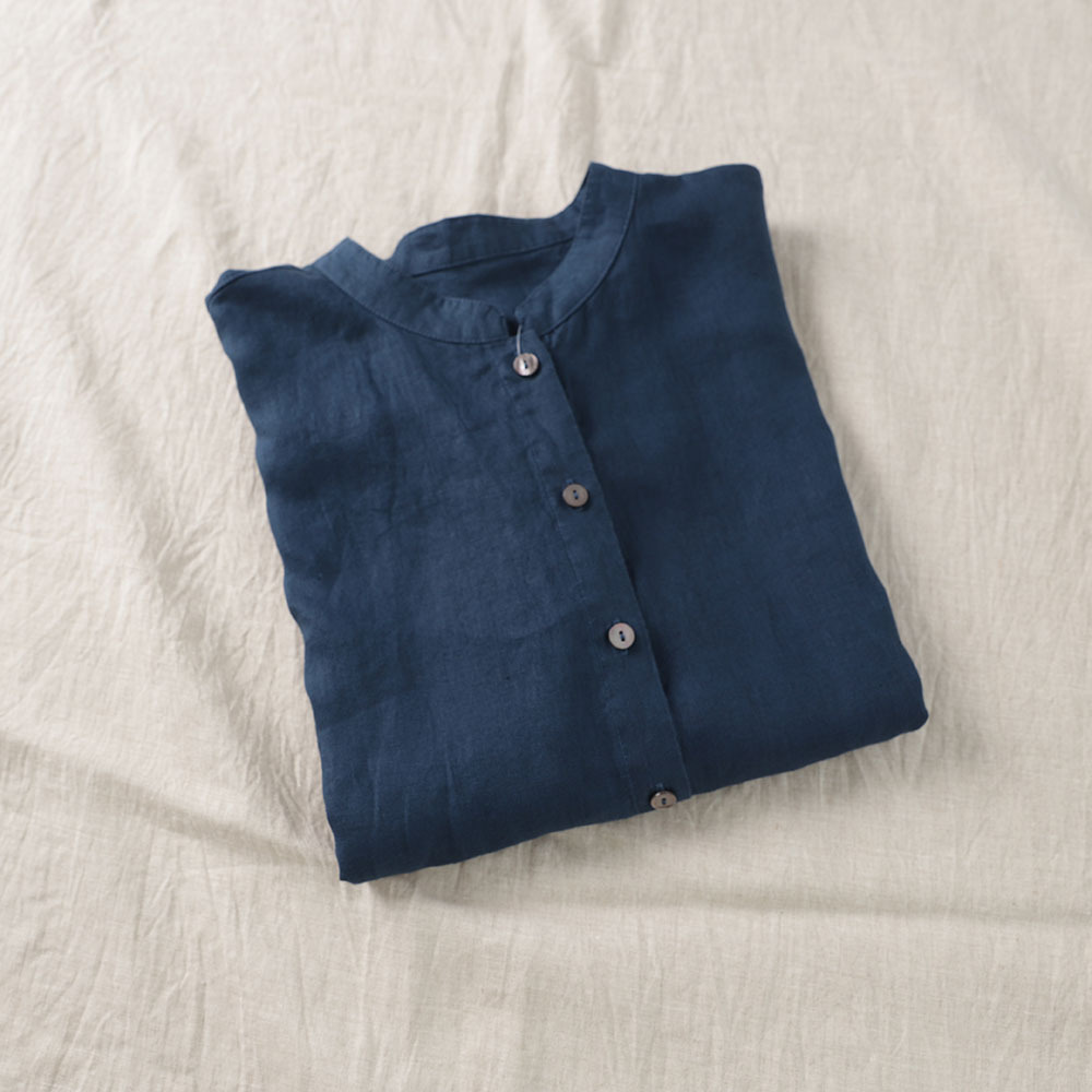 2026년 여름 신상품 예술적인 루즈핏 솔리드 컬러 면마 스타일 카라 반팔 셔츠 여성용 셔츠 상의스토어 가기