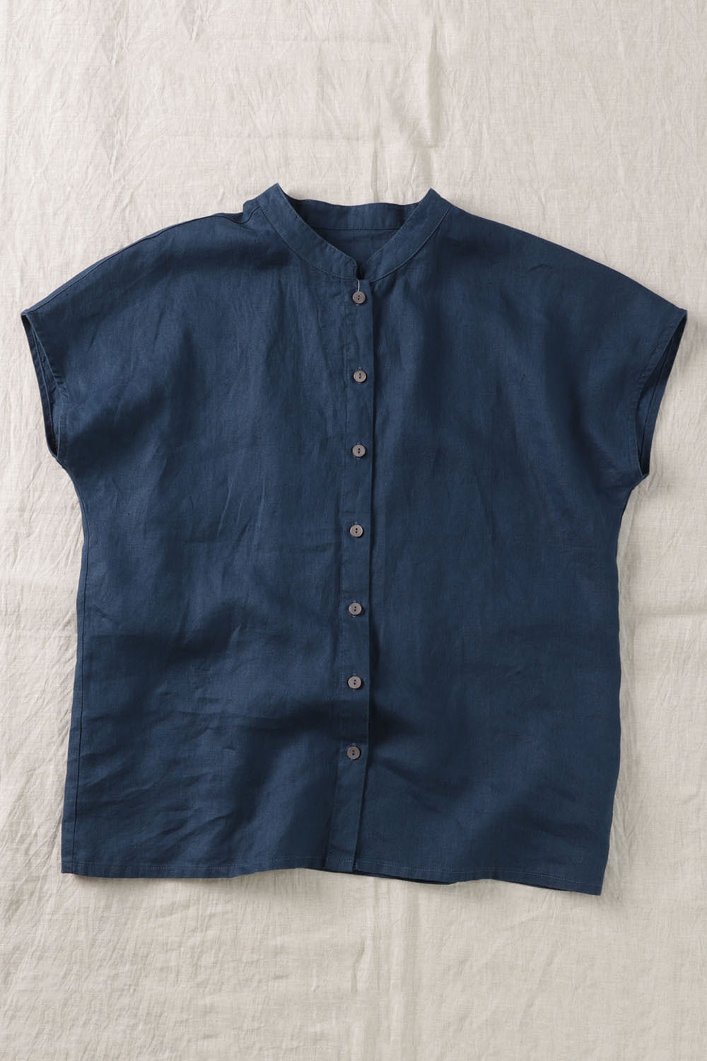 2026년 여름 신상품 예술적인 루즈핏 솔리드 컬러 면마 스타일 카라 반팔 셔츠 여성용 셔츠 상의