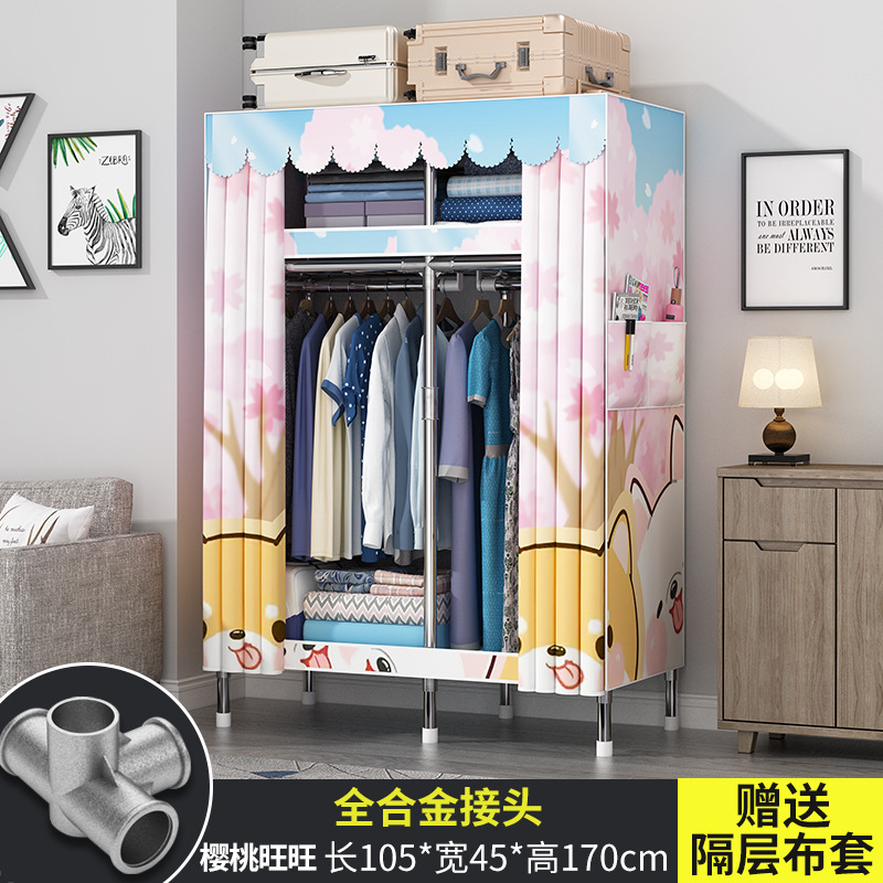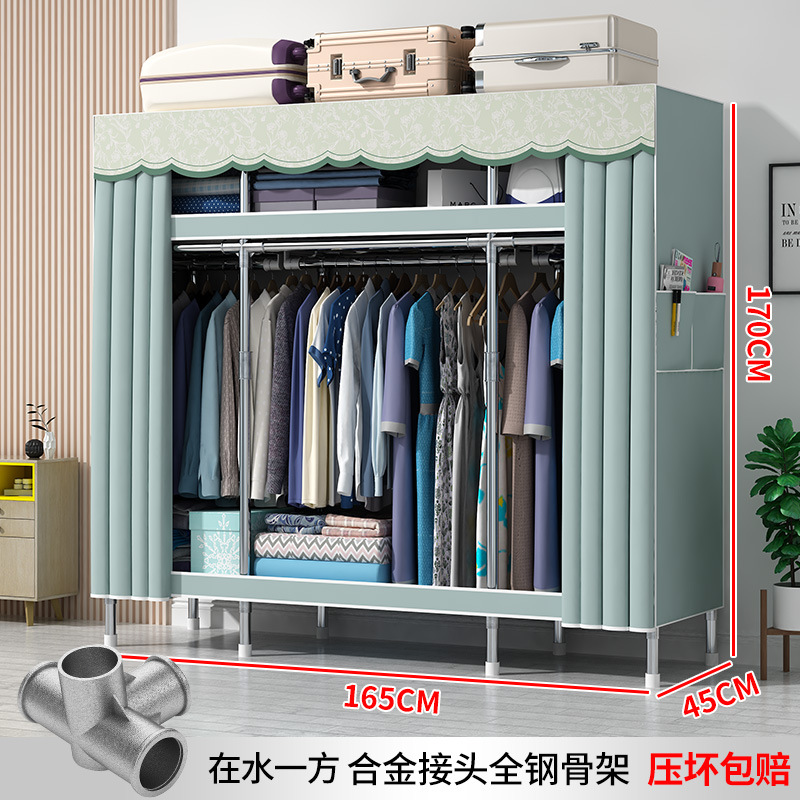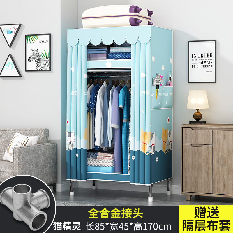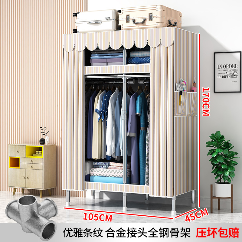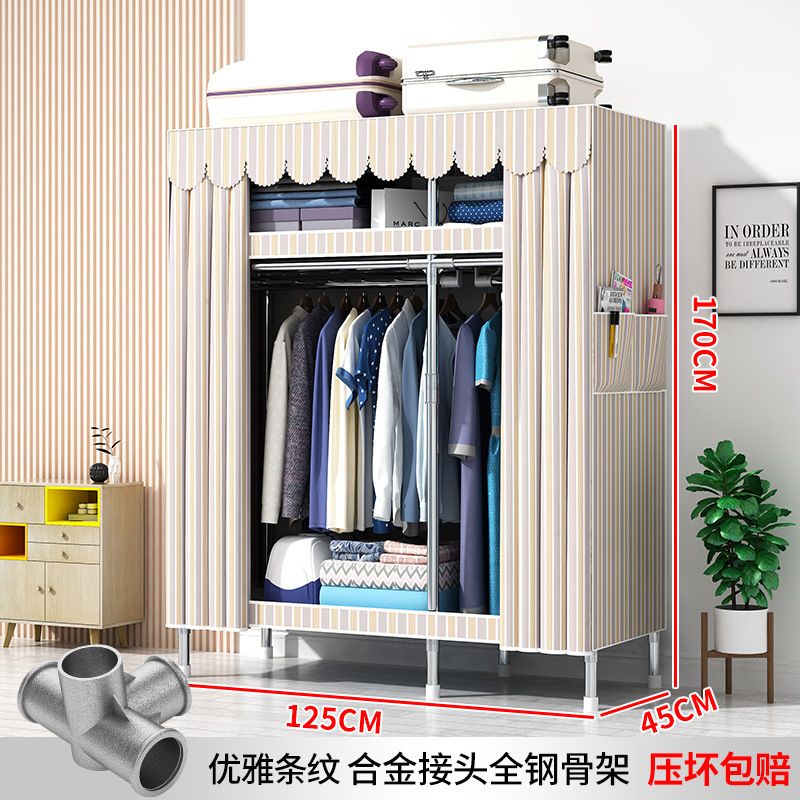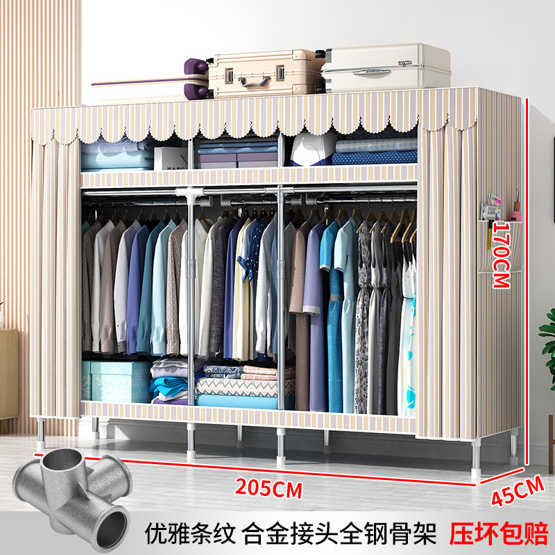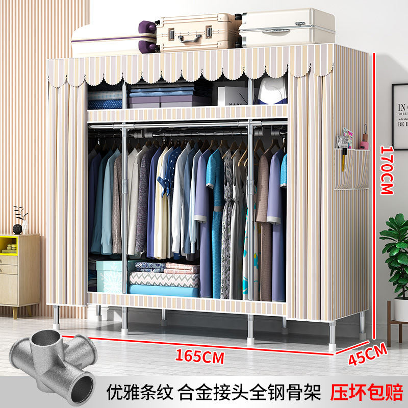 간단한 옷장 현대 간단한 천 옷장 강철 파이프 대담한 강화 임대실 홈 침실 보관 옷걸이