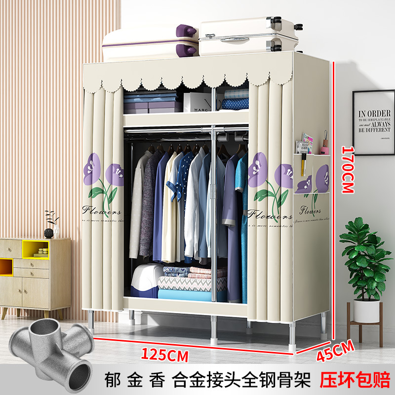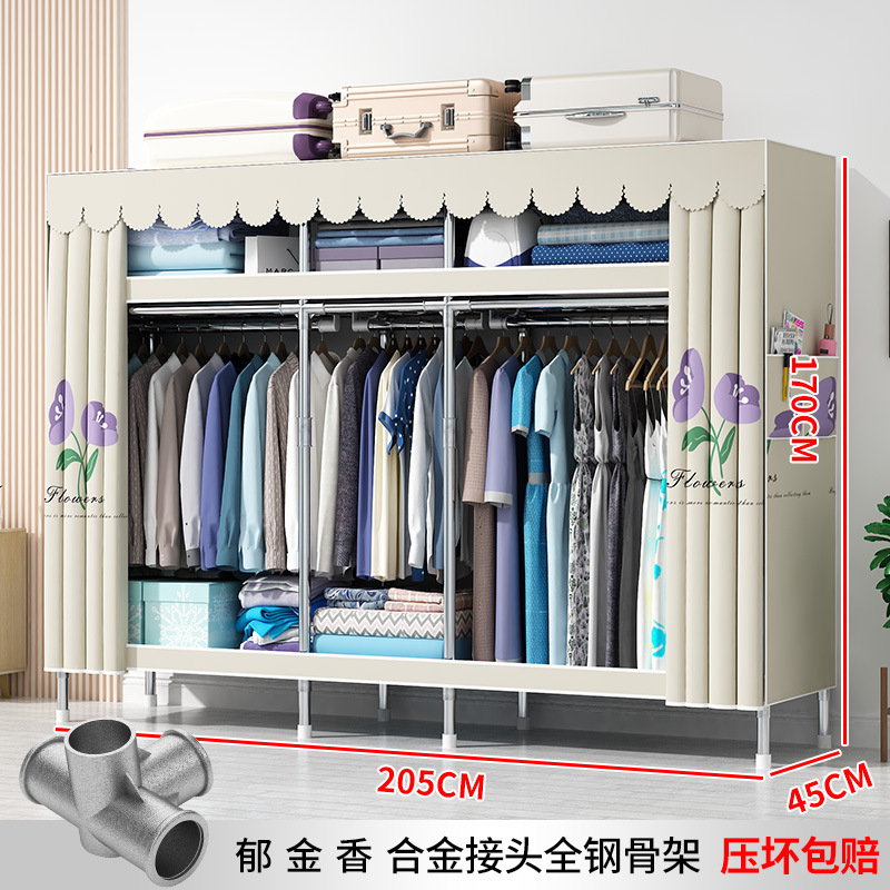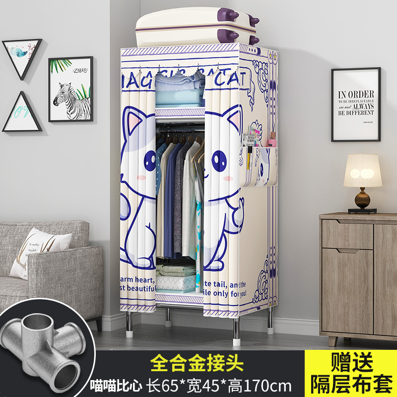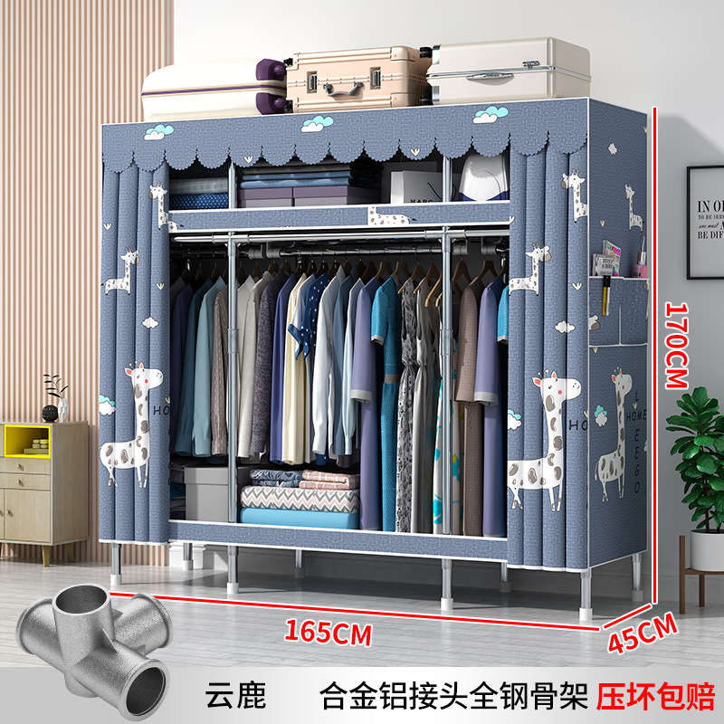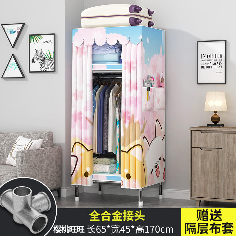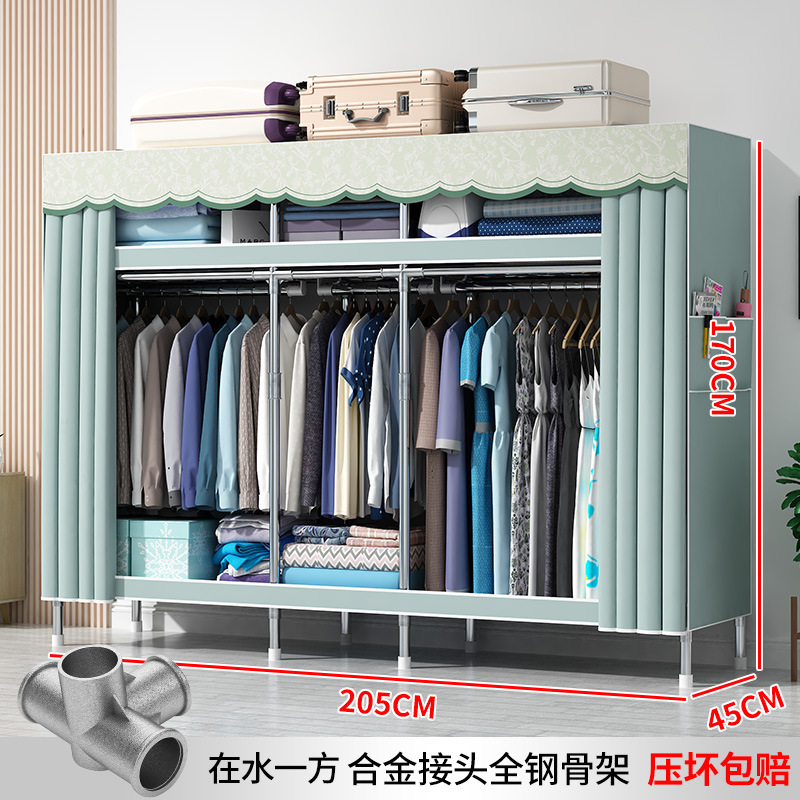 간단한 옷장 현대 간단한 천 옷장 강철 파이프 대담한 강화 임대실 홈 침실 보관 옷걸이
