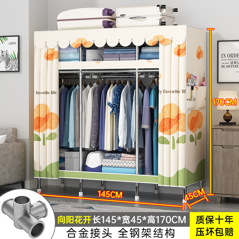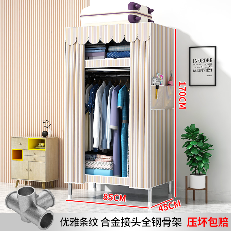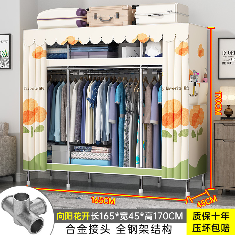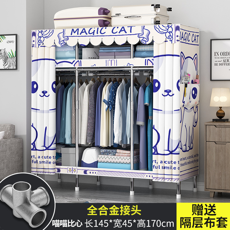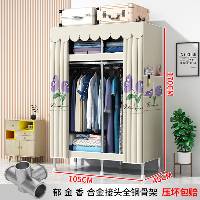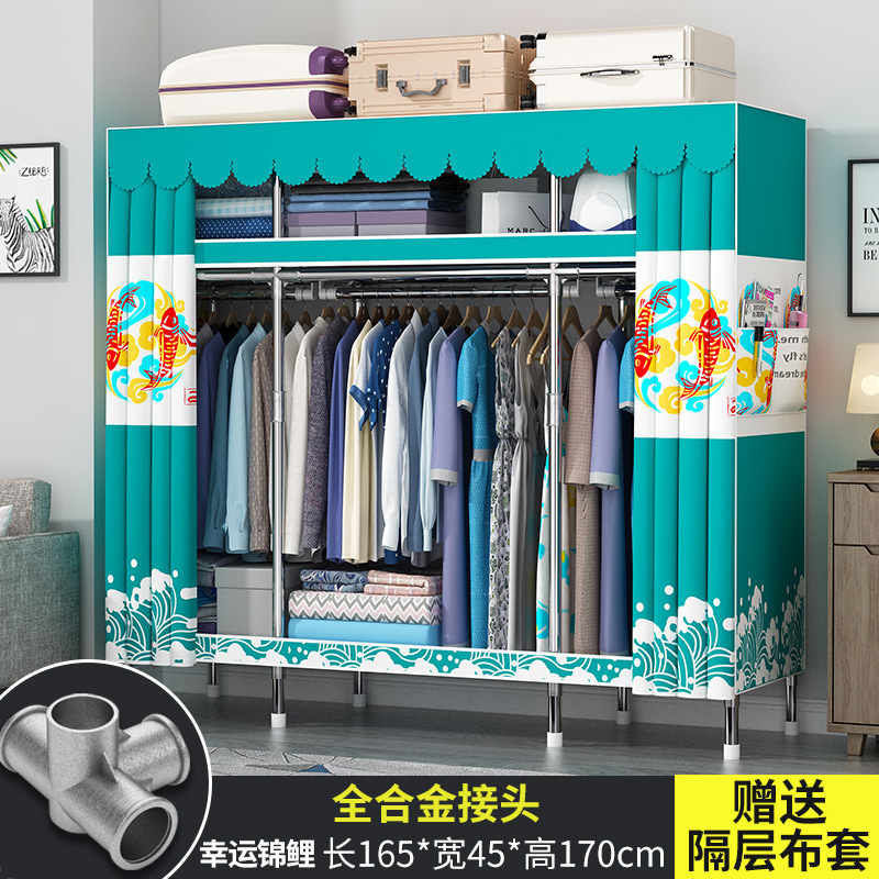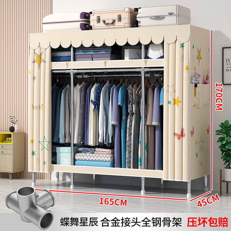간단한 옷장 현대 간단한 천 옷장 강철 파이프 대담한 강화 임대실 홈 침실 보관 옷걸이