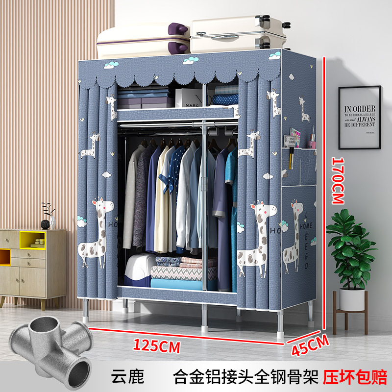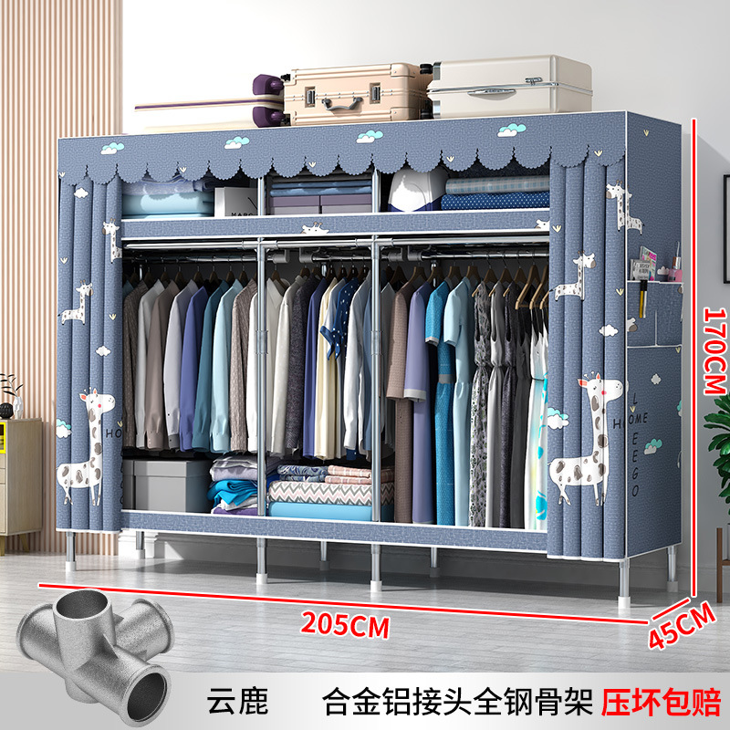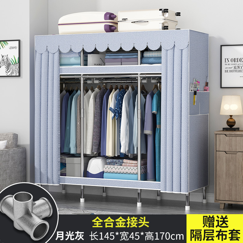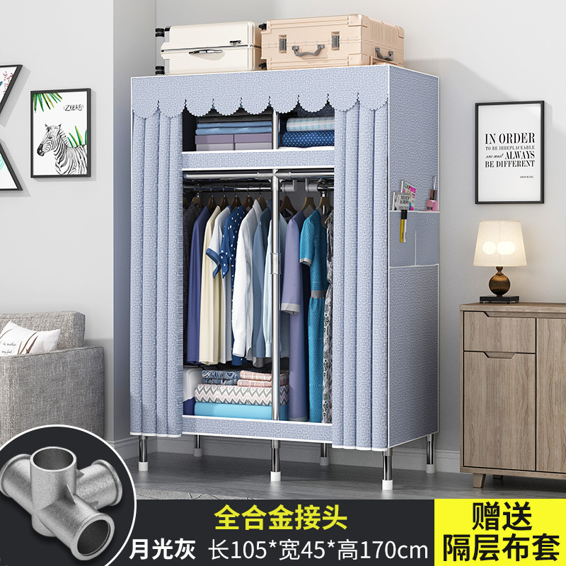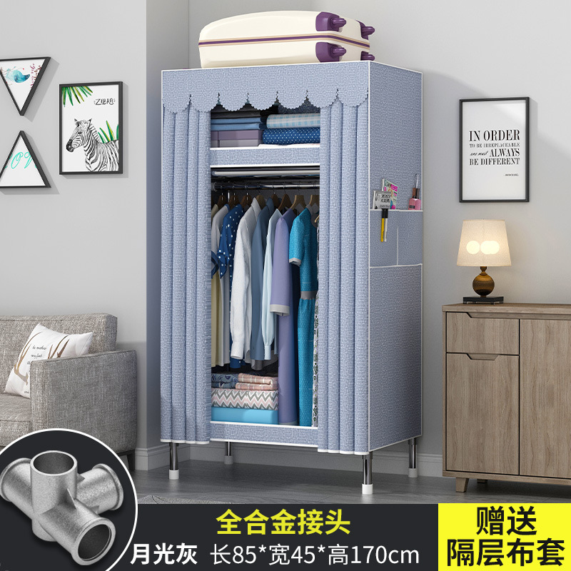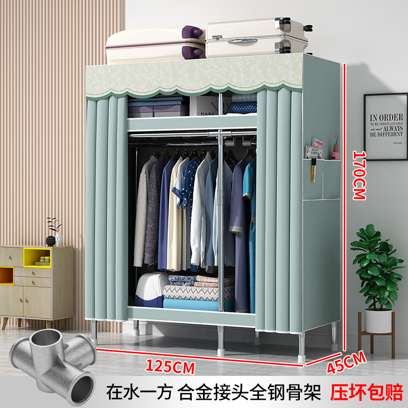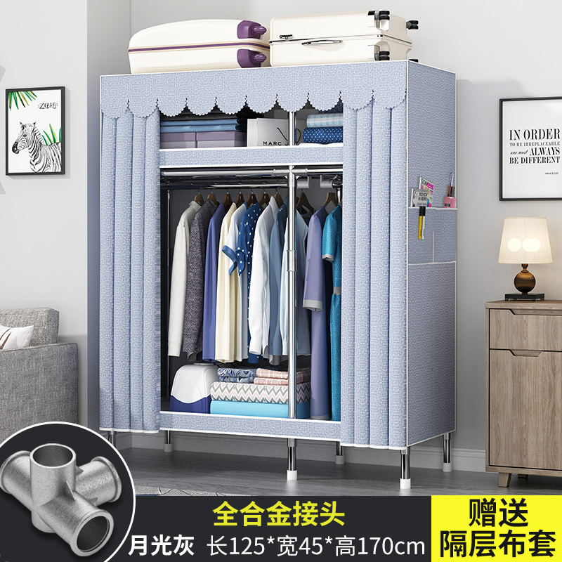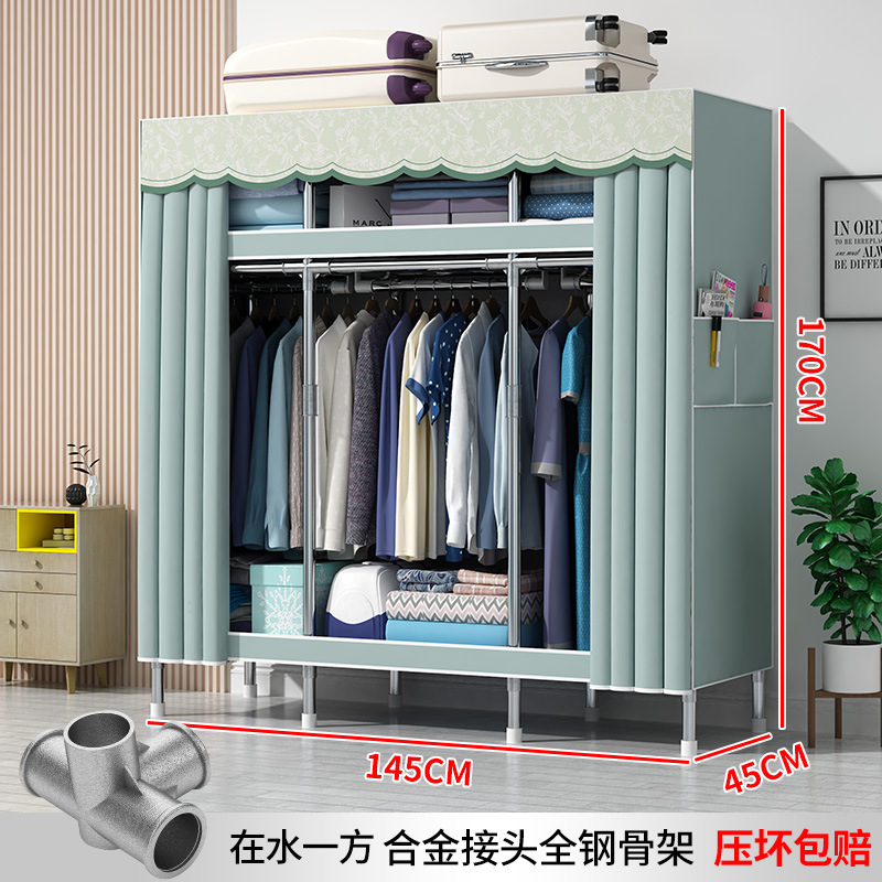 간단한 옷장 현대 간단한 천 옷장 강철 파이프 대담한 강화 임대실 홈 침실 보관 옷걸이스토어 가기