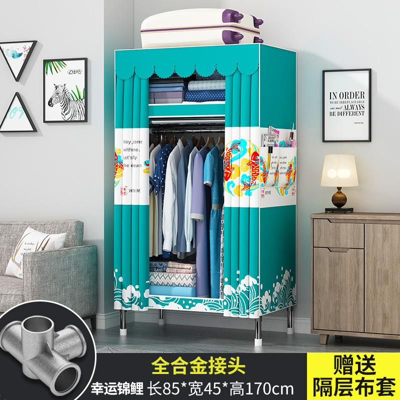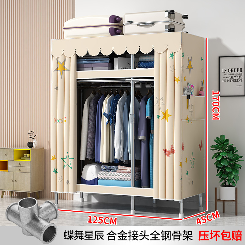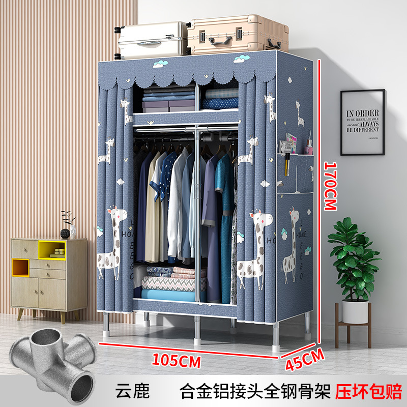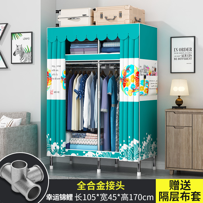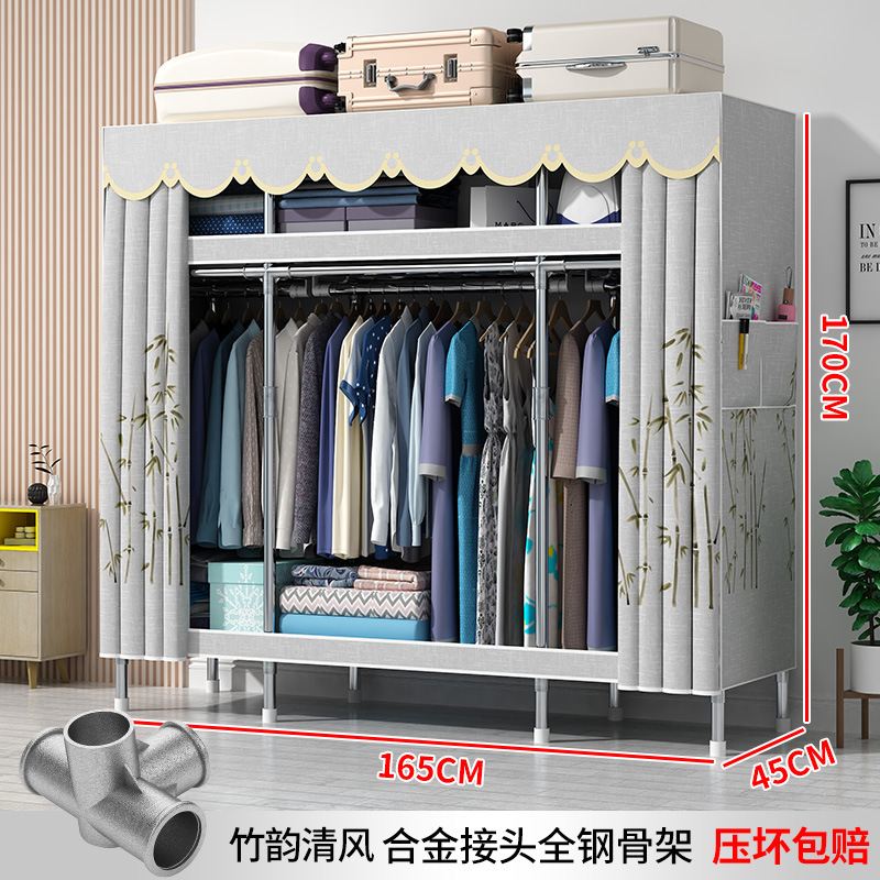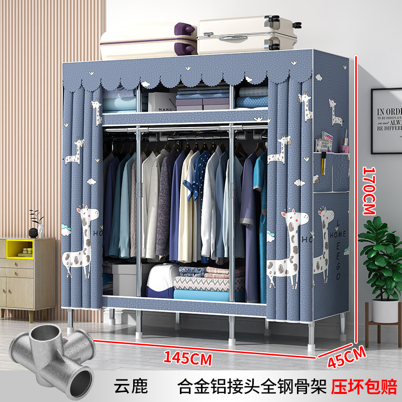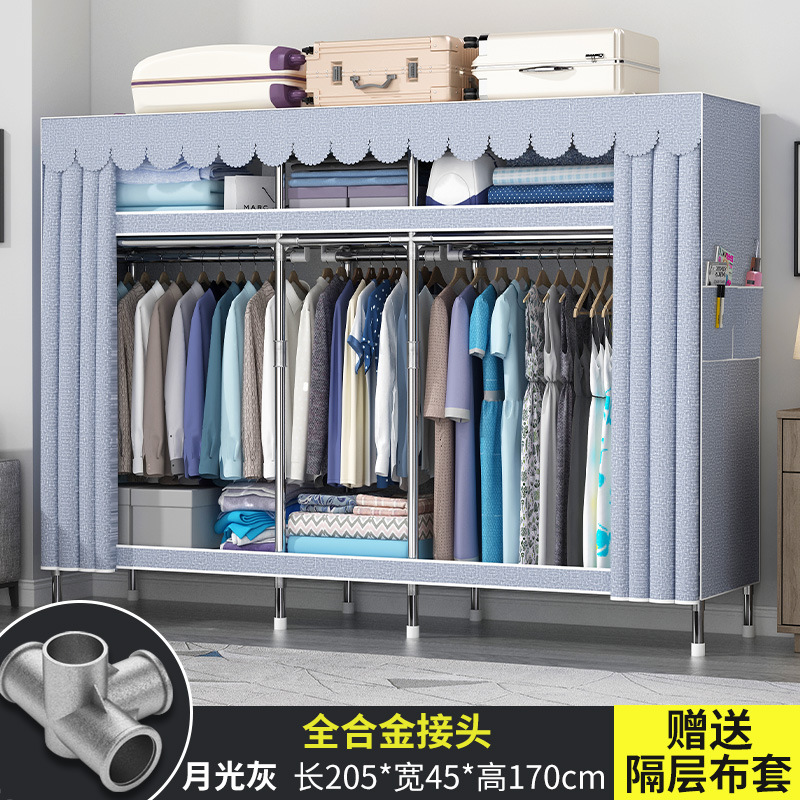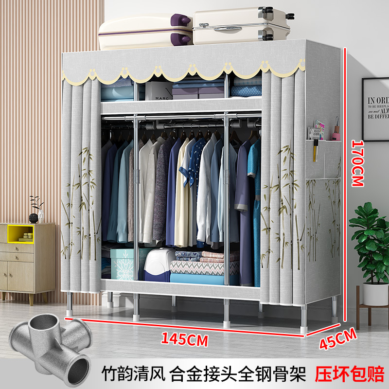 간단한 옷장 현대 간단한 천 옷장 강철 파이프 대담한 강화 임대실 홈 침실 보관 옷걸이스토어 가기