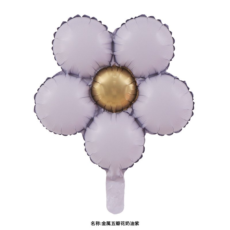 국경 간 금속 둥근 다섯 꽃잎 꽃 알루미늄 필름 풍선 생일 파티 장식 매트 둥근 다섯 꽃잎 꽃 풍선