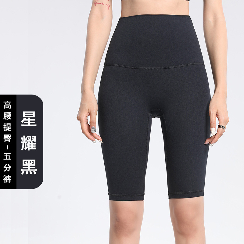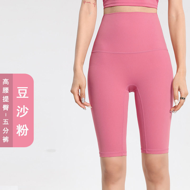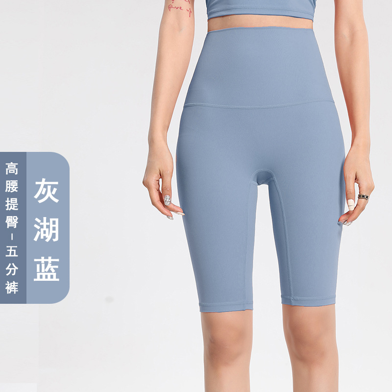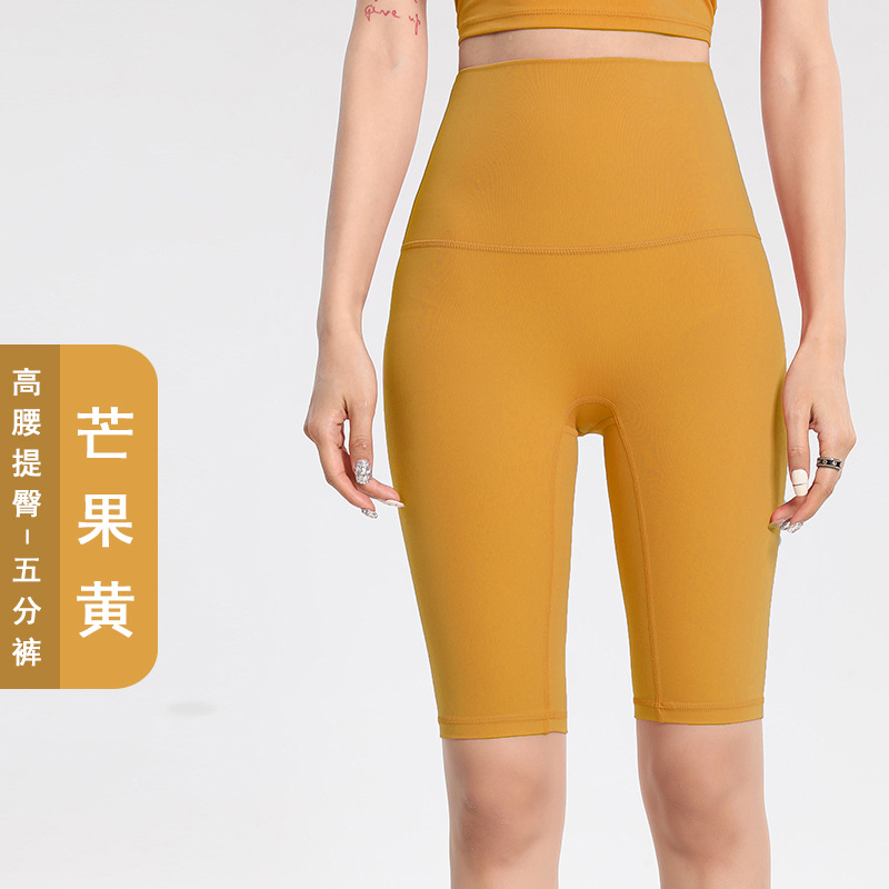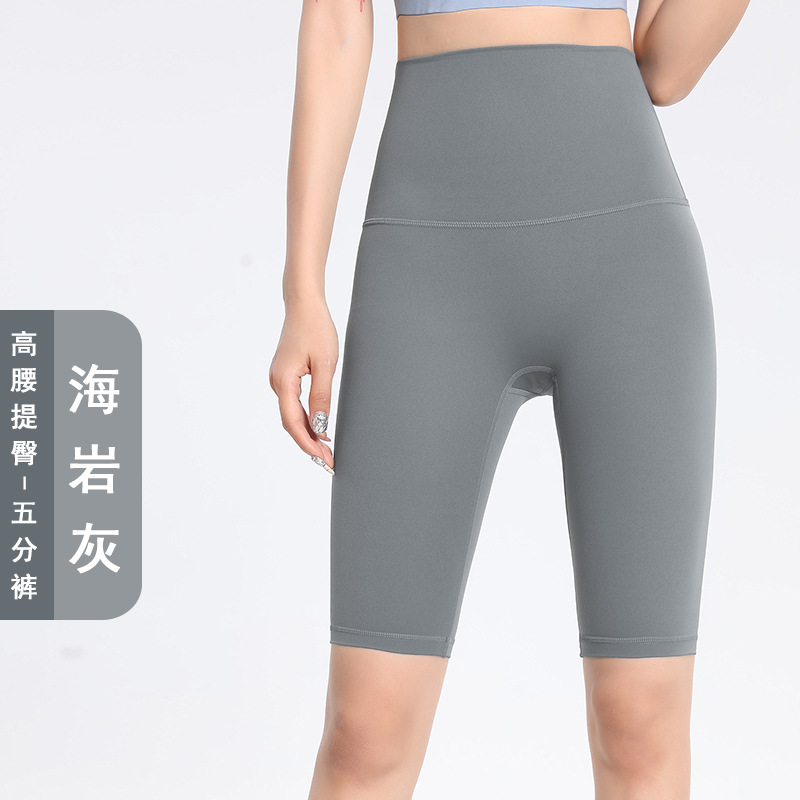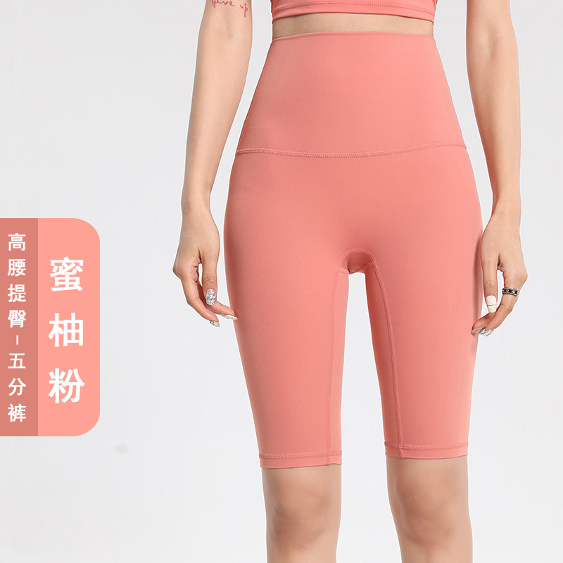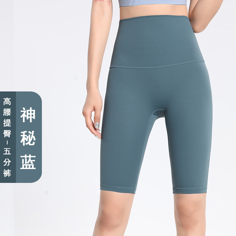 Lulu 사이클링 바지 여성 여름 스포츠 누드 요가 바지 유럽과 미국의 엉덩이 리프팅 피트니스 바지 하이 웨이스트 5부 바지 요가 반바지
