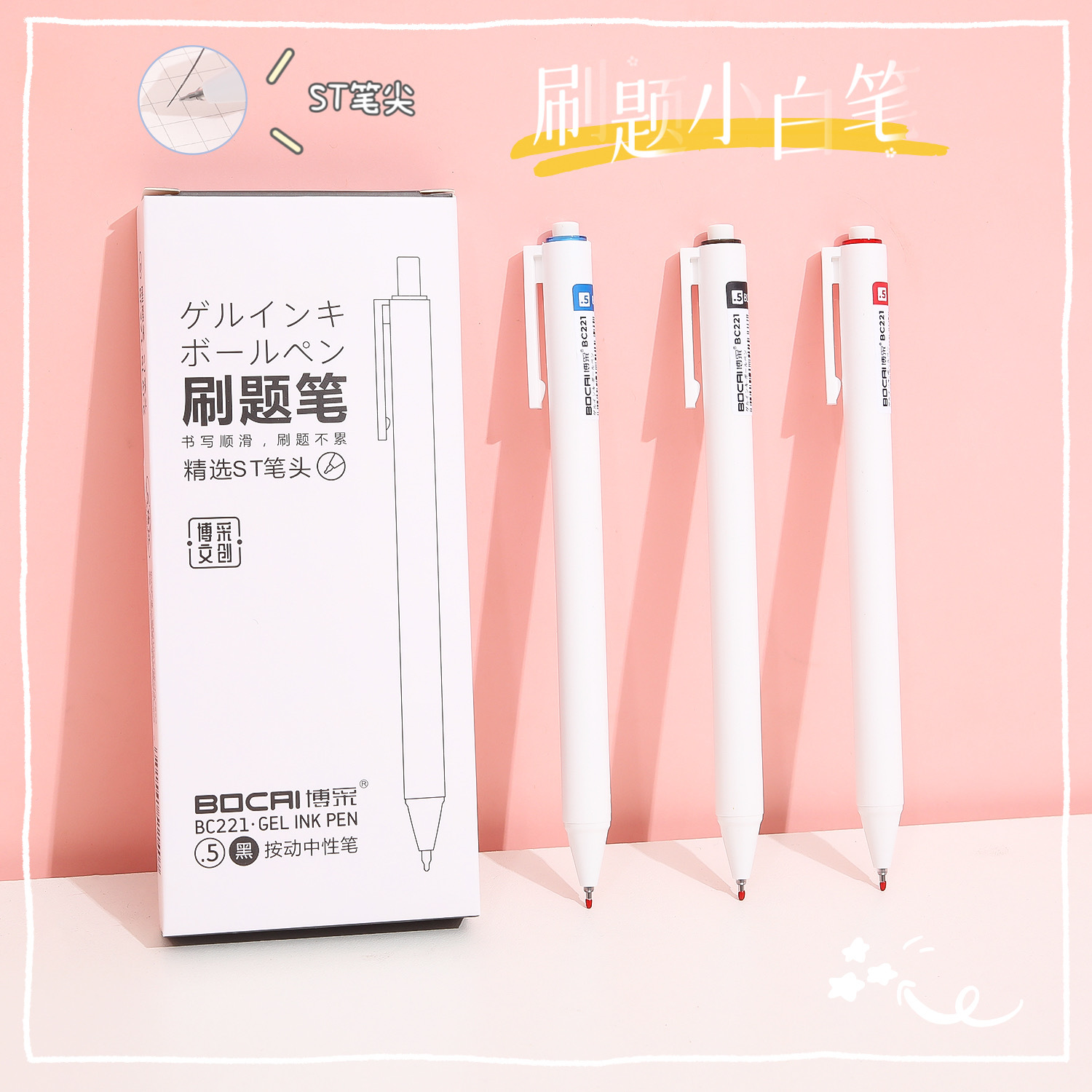 브러쉬 펜 ST 헤드 소 흰색 펜 프레스 펜 간단 프레스 펜 학생 문구 탄소 중성 펜 블랙 레드 블루