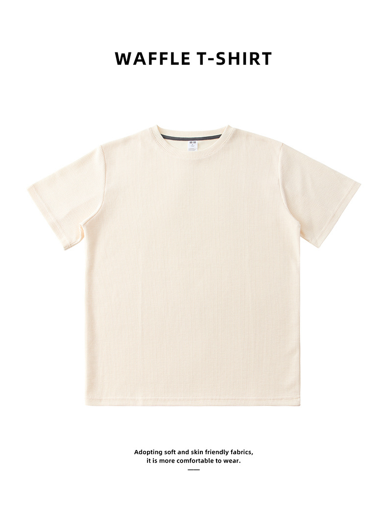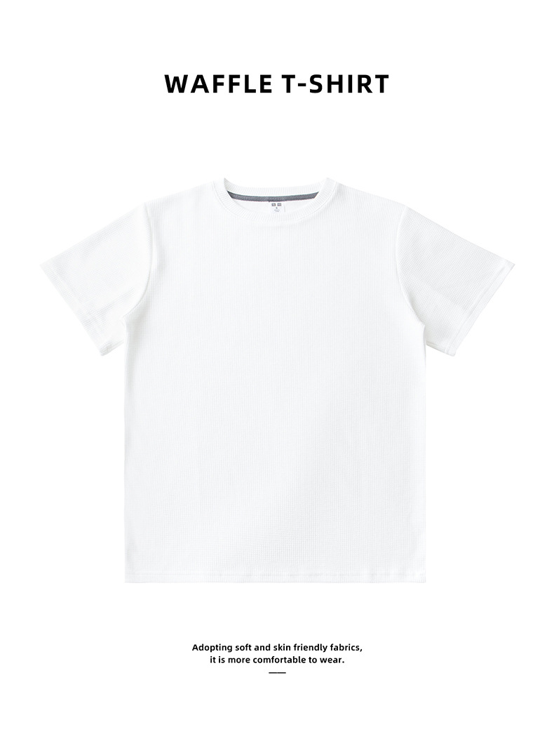 260g 와플 니트 반팔 티셔츠 남성용 조커 느슨한 단색 무거운 t 질감과 버전은 사랑하기 어렵습니다스토어 가기
