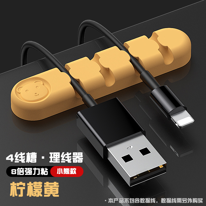 小熊硅胶桌面固线器数据线整理固定器耳机线夹电线收纳神器理线器