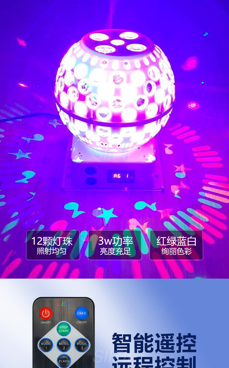 LED 랜턴 패턴 램프 크리스탈 매직 볼 램프 홈 KTV 룸 음성 제어 웨딩 다채로운 회전 흔들리는 헤드 스테이지 램프스토어 가기