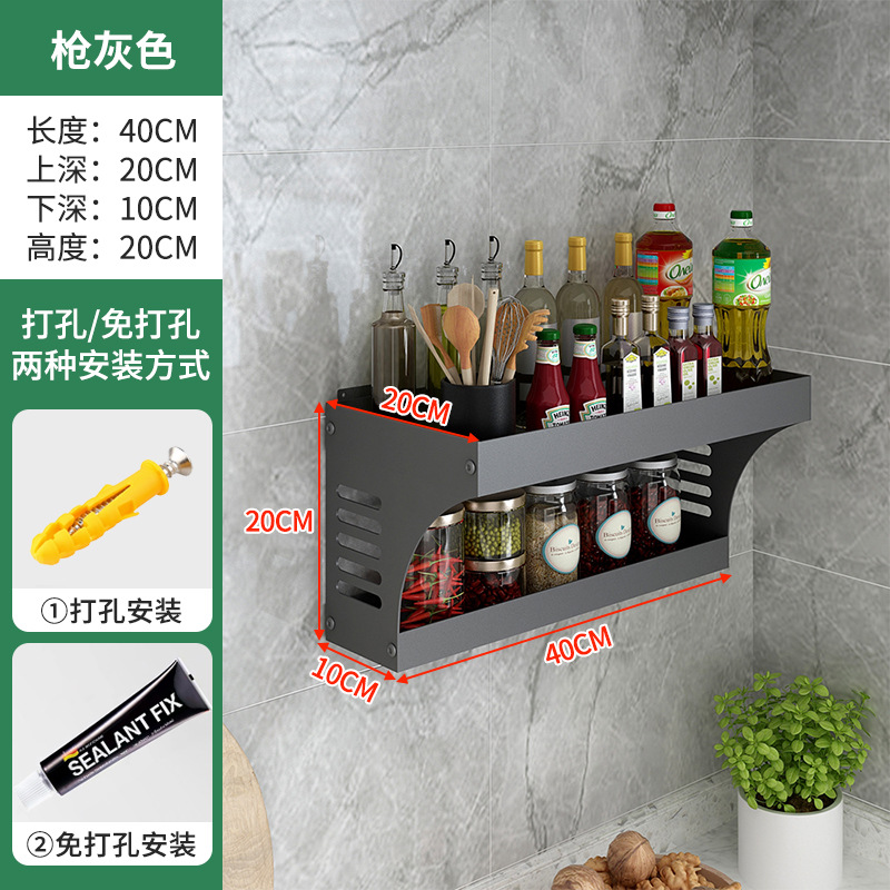 조미료 보관 선반 무타공 벽걸이형 양층 조미료 용품 보관 선반 조미료 랙 조미료 용기스토어 가기