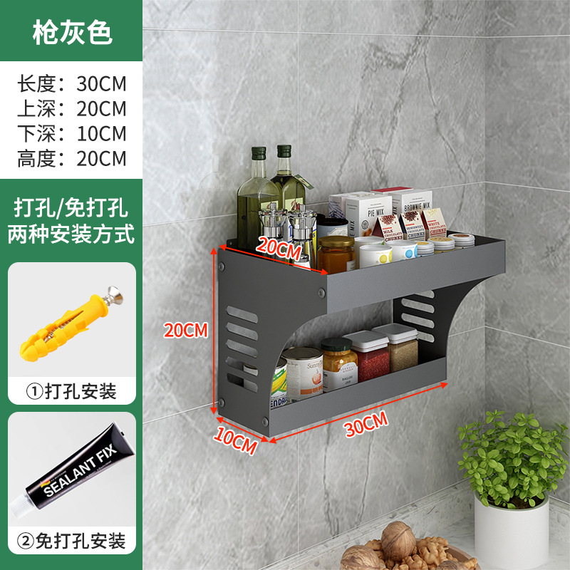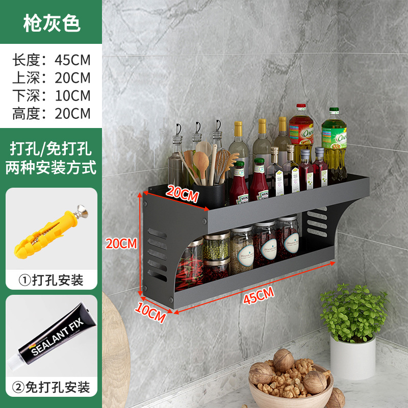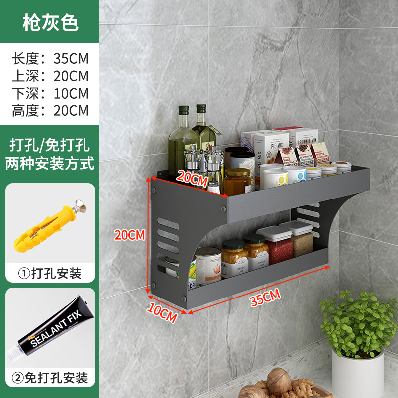 조미료 보관 선반 무타공 벽걸이형 양층 조미료 용품 보관 선반 조미료 랙 조미료 용기