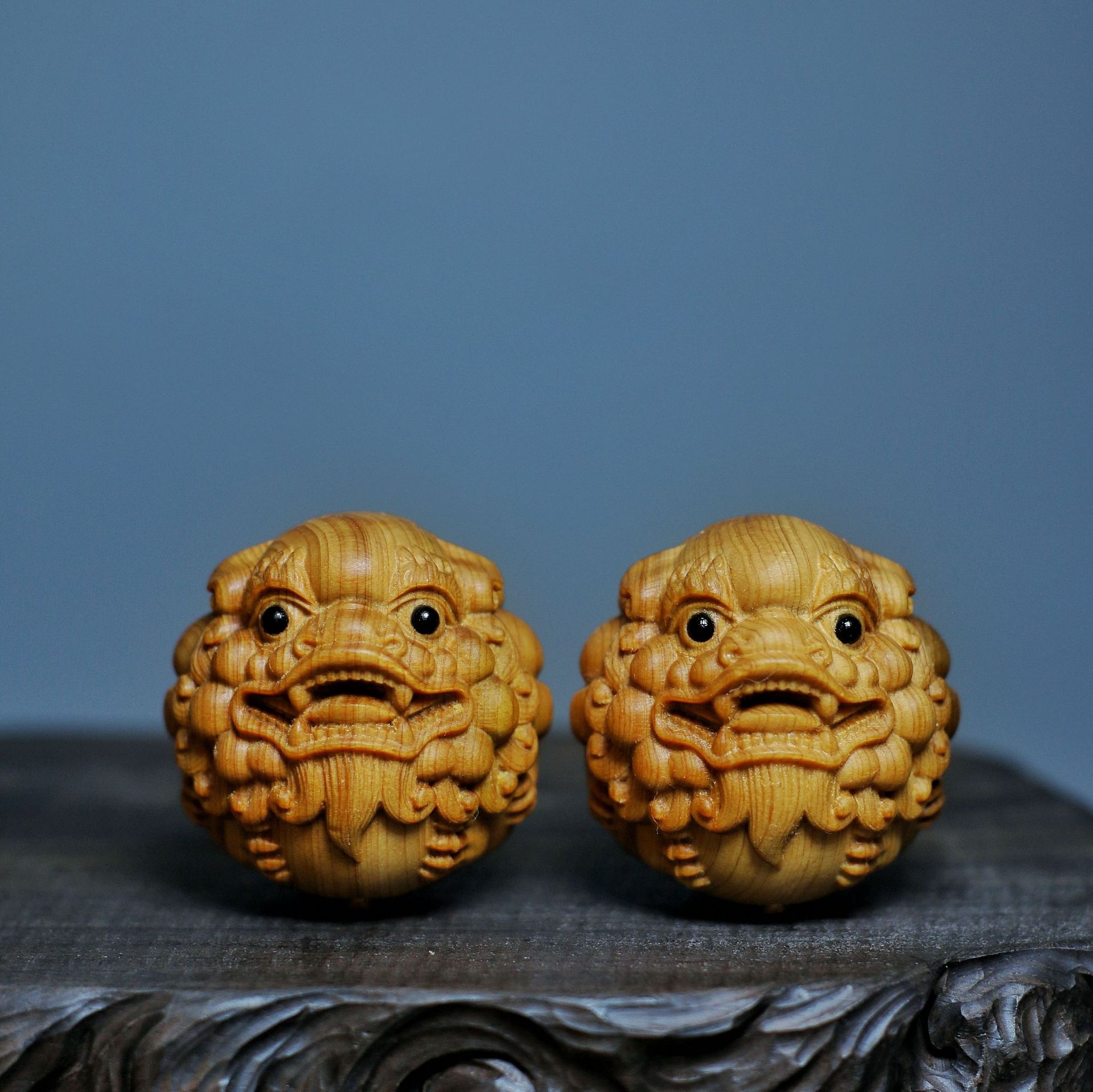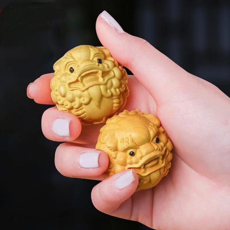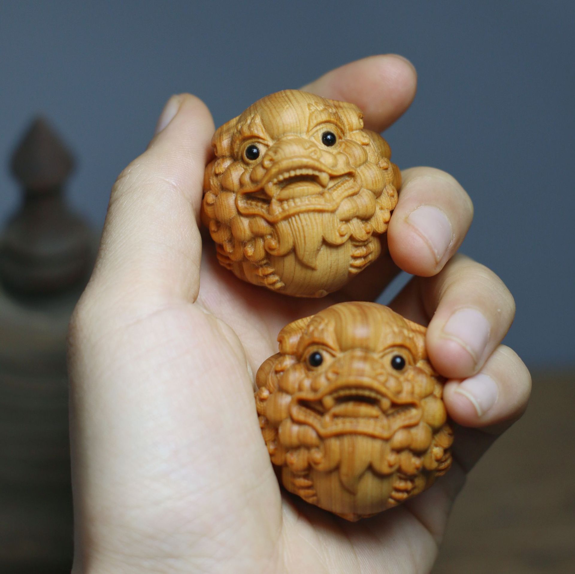 회양목 조각 사자 머리 용감한 핸드볼 핸드 마사지 단단한 나무 동물 공예 선물 노인 손잡이 조각스토어 가기
