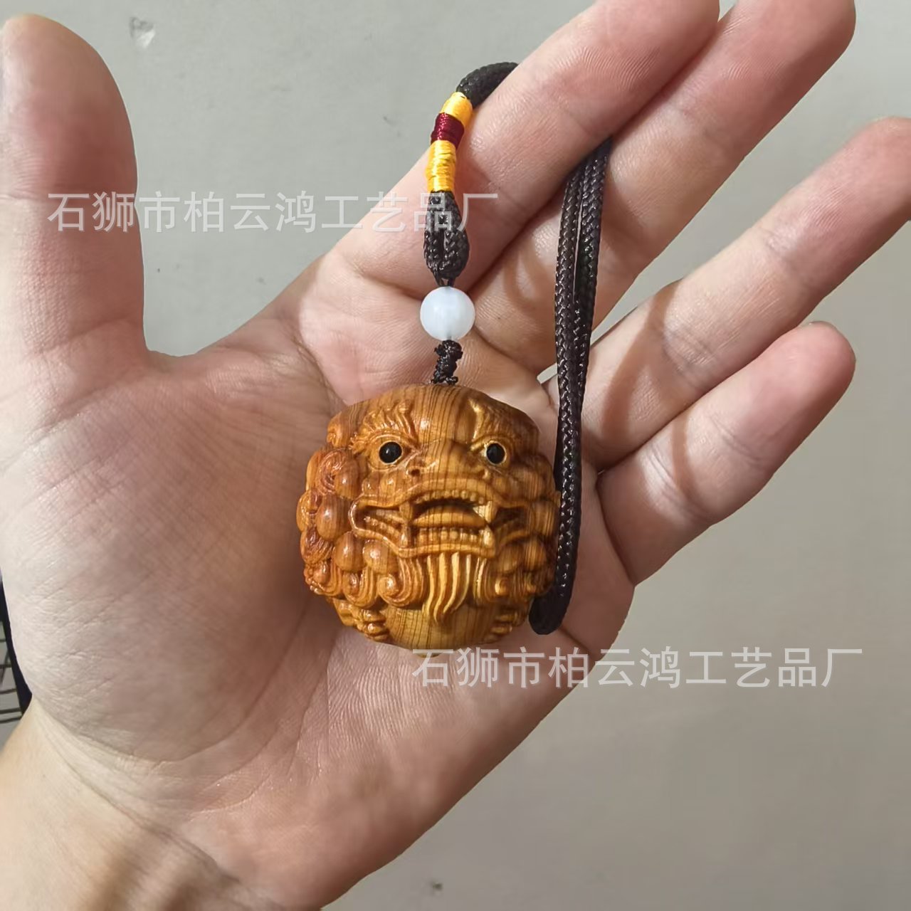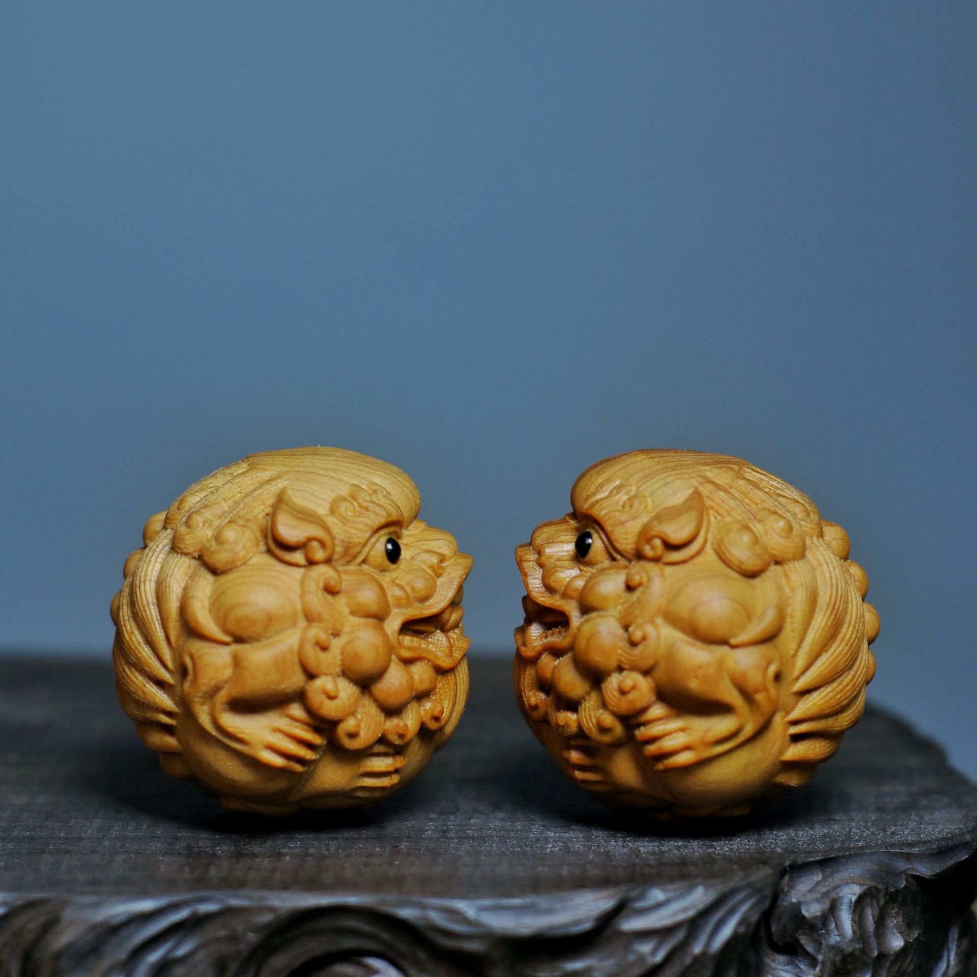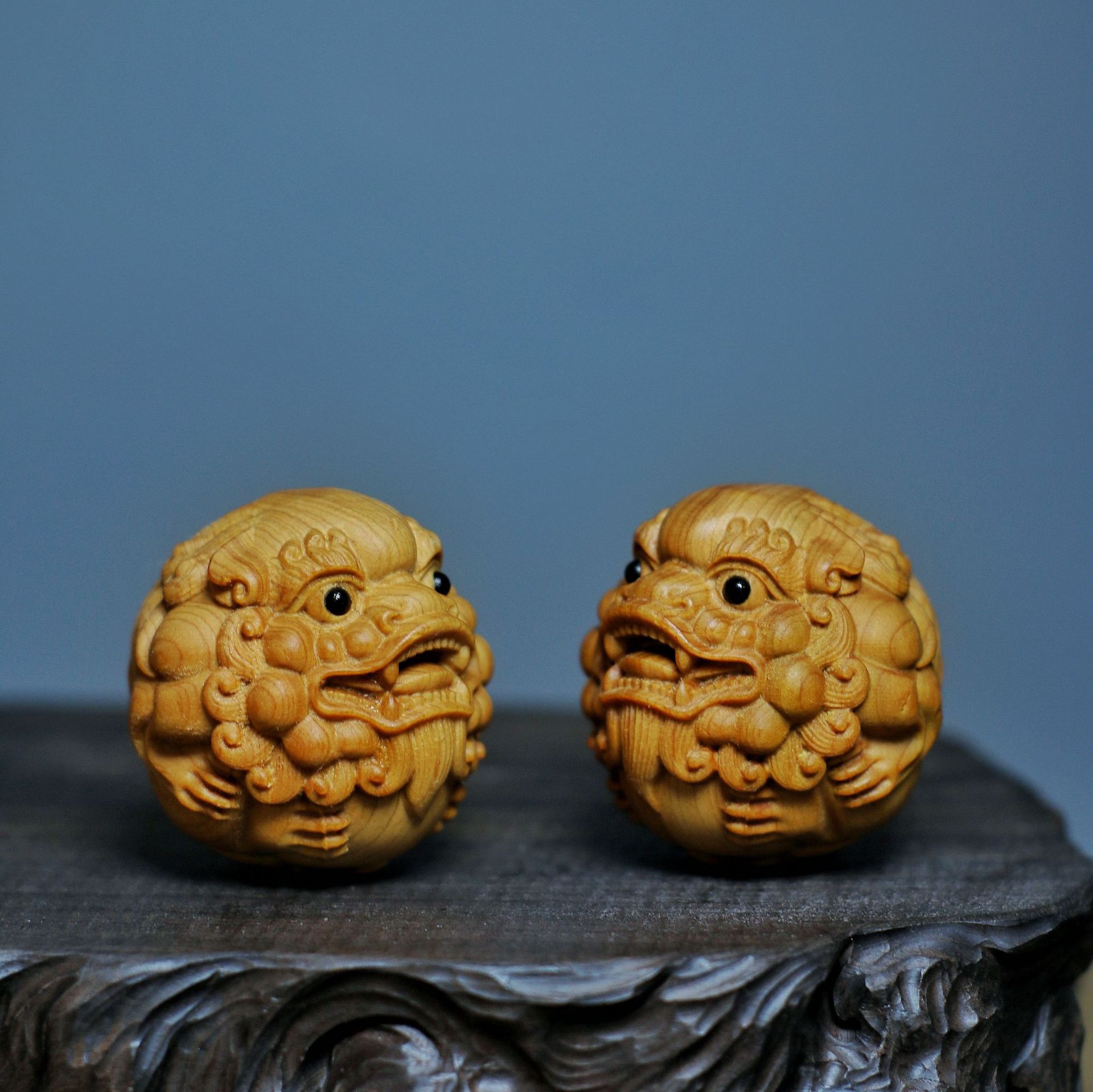 회양목 조각 사자 머리 용감한 핸드볼 핸드 마사지 단단한 나무 동물 공예 선물 노인 손잡이 조각스토어 가기