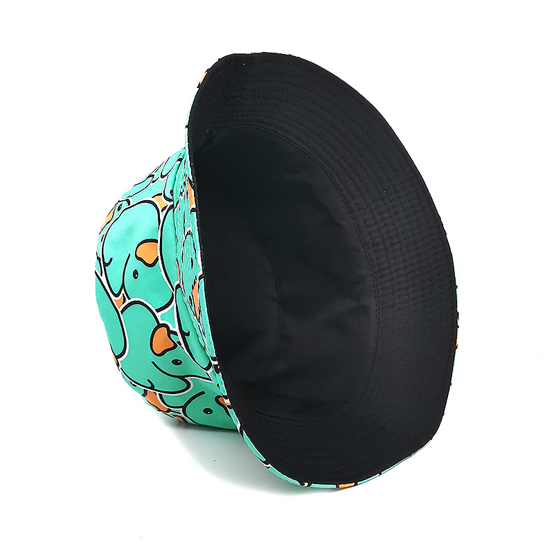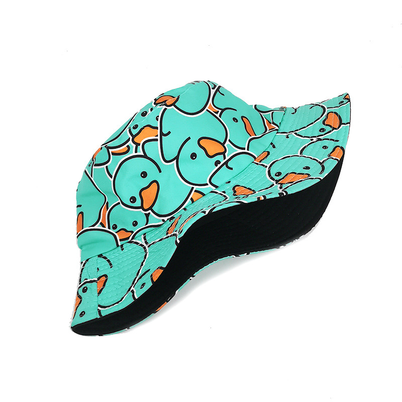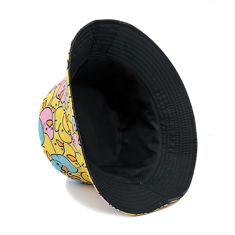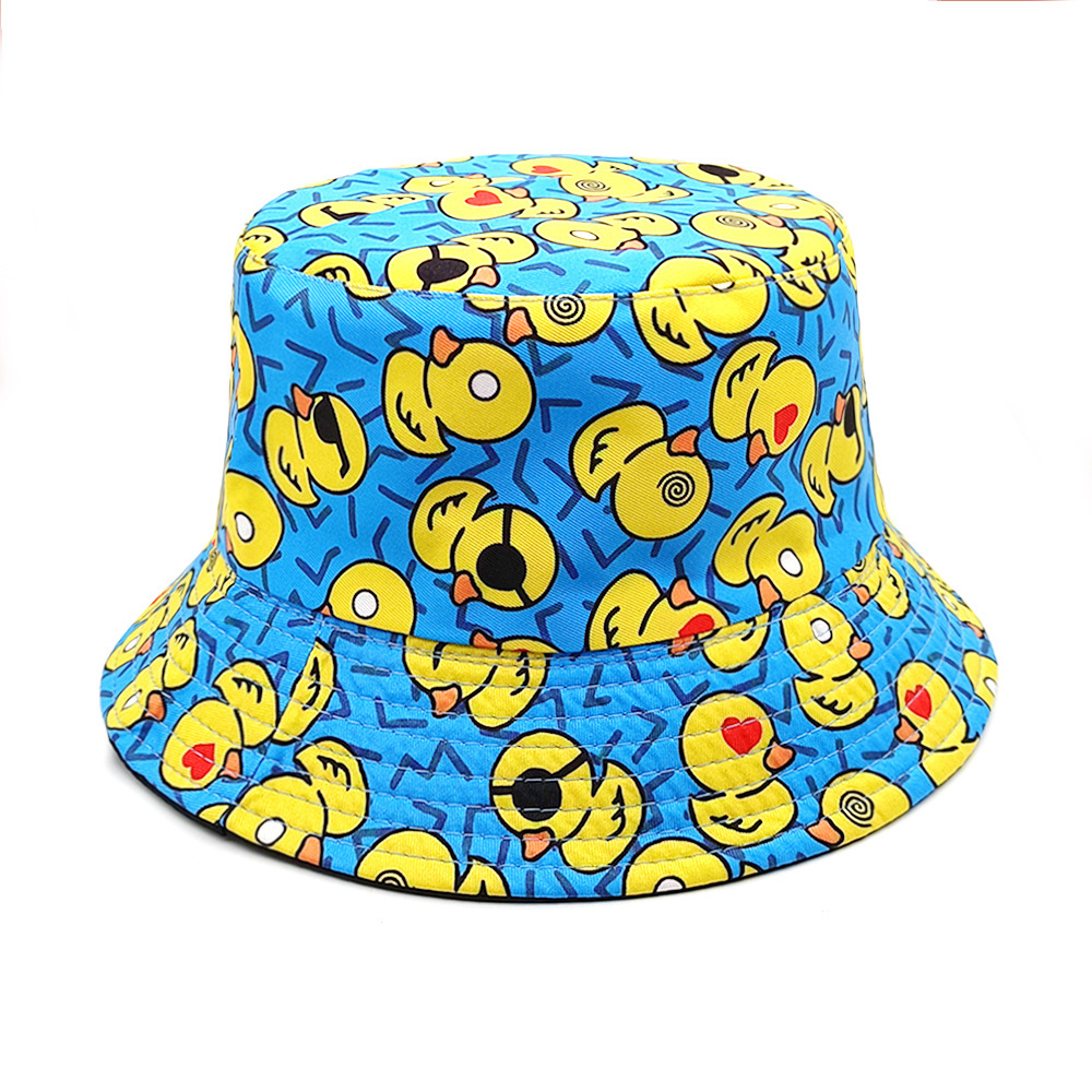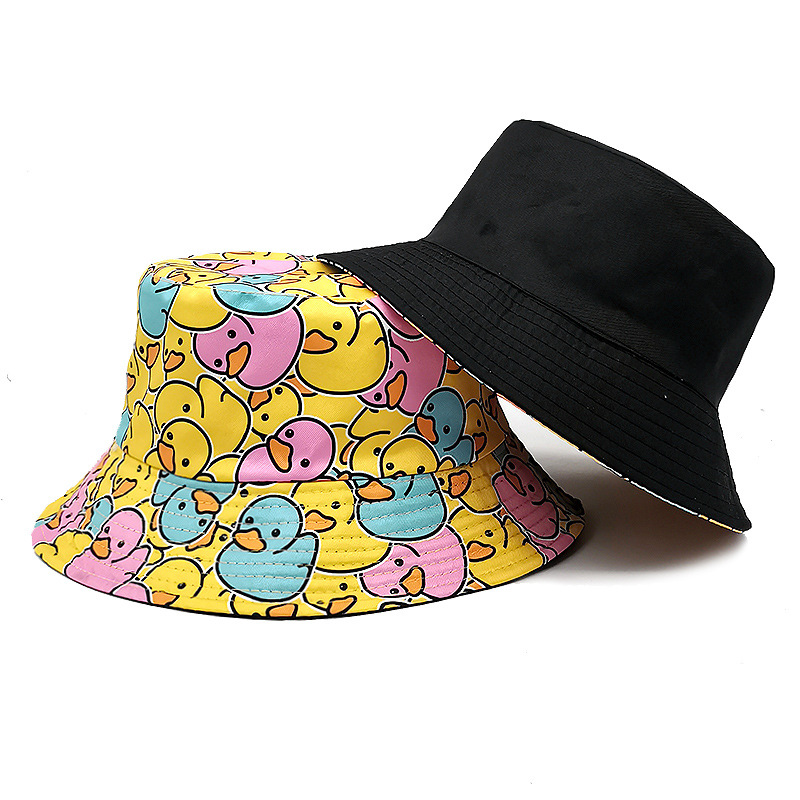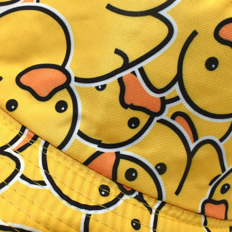 유럽과 미국의 새로운 스타일 작은 노란 오리 프린트 어부 모자 남녀 공용 양면 자외선 차단 모자 패션 만화 오리 모자