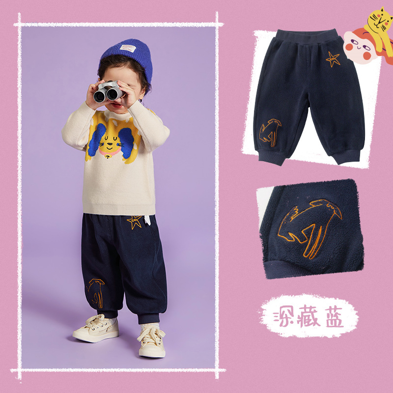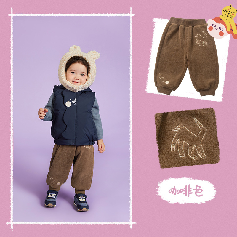 어린이 양면 기모 바지 2025 겨울 남녀 아기 두꺼운 랜턴 팬츠 캐주얼 스타일 조임바지 따뜻함스토어 가기