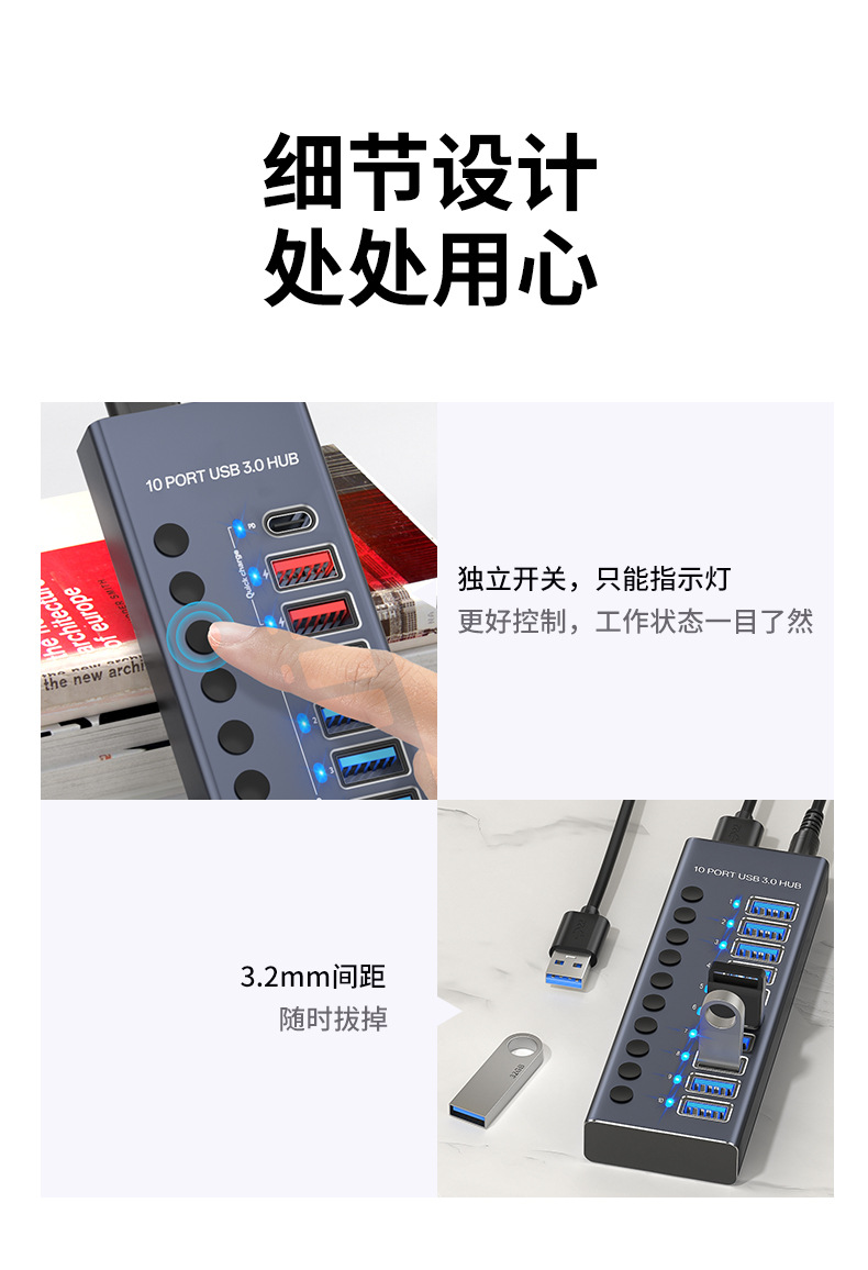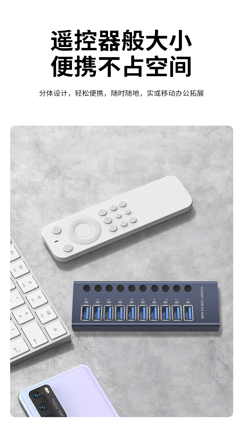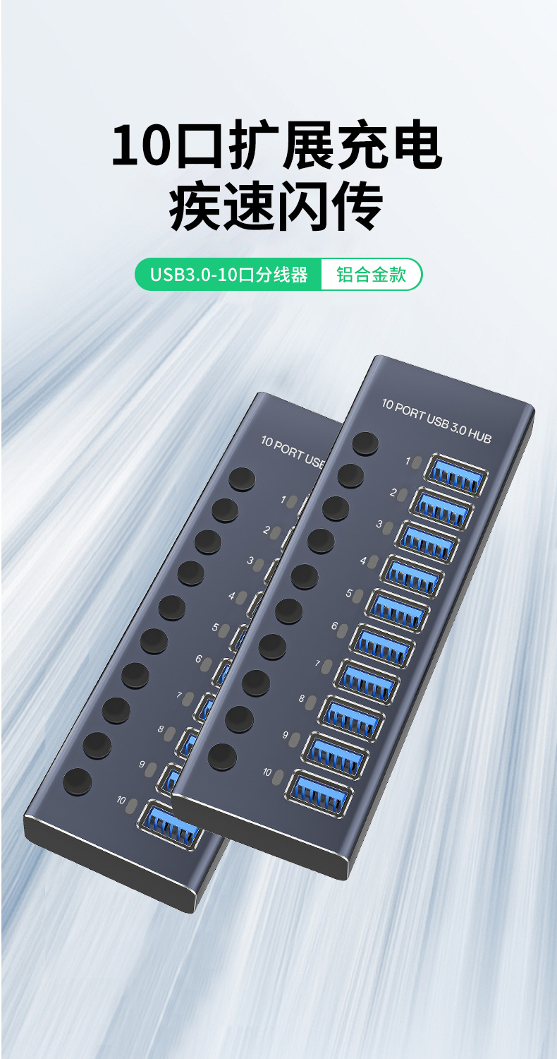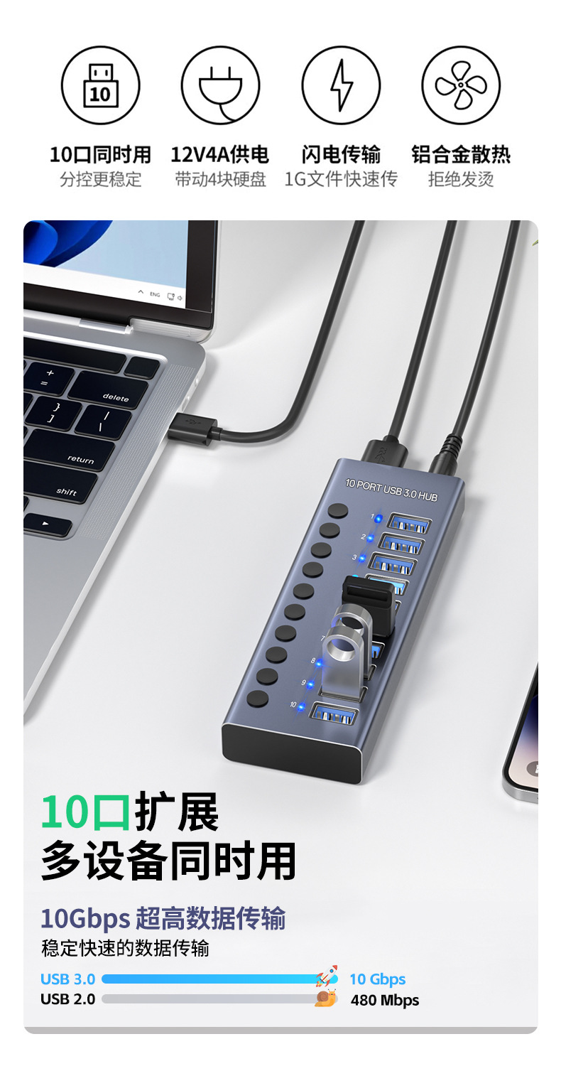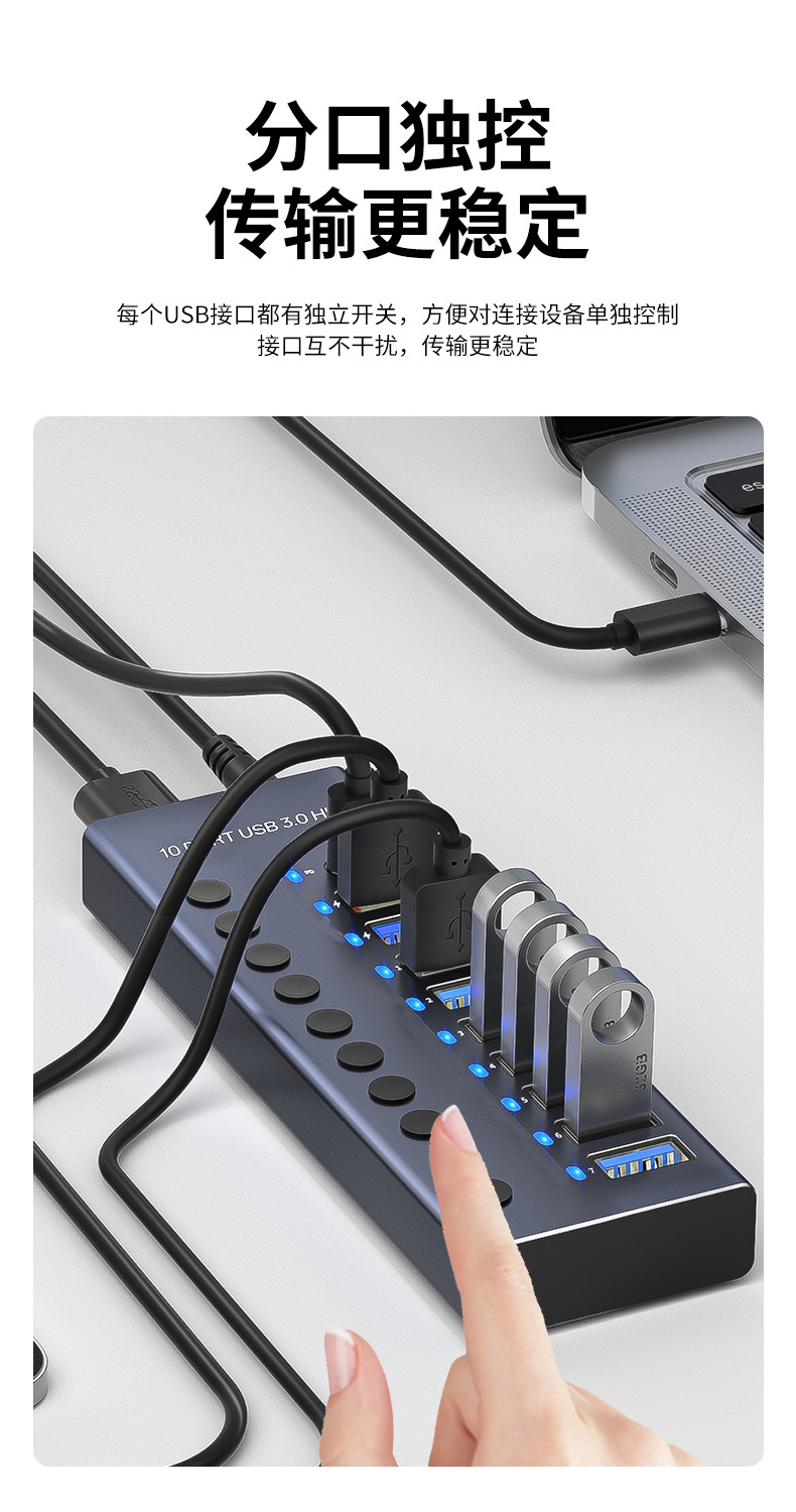 USB3.0HUB 도킹 스테이션 10포트 7포트 4포트 스위치 충전 타입-C 컴퓨터 허브 도킹 스테이션