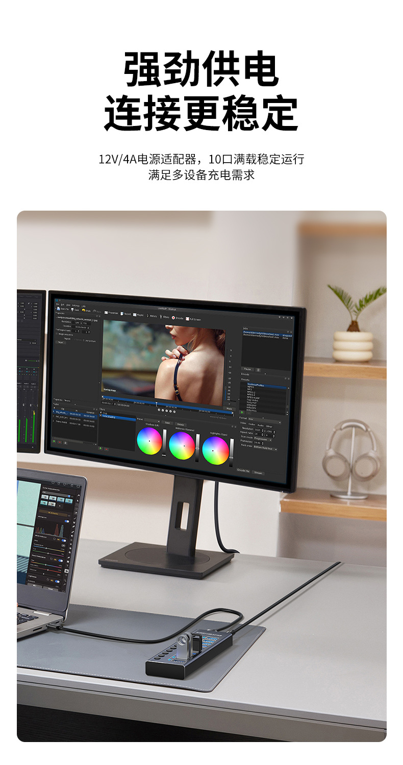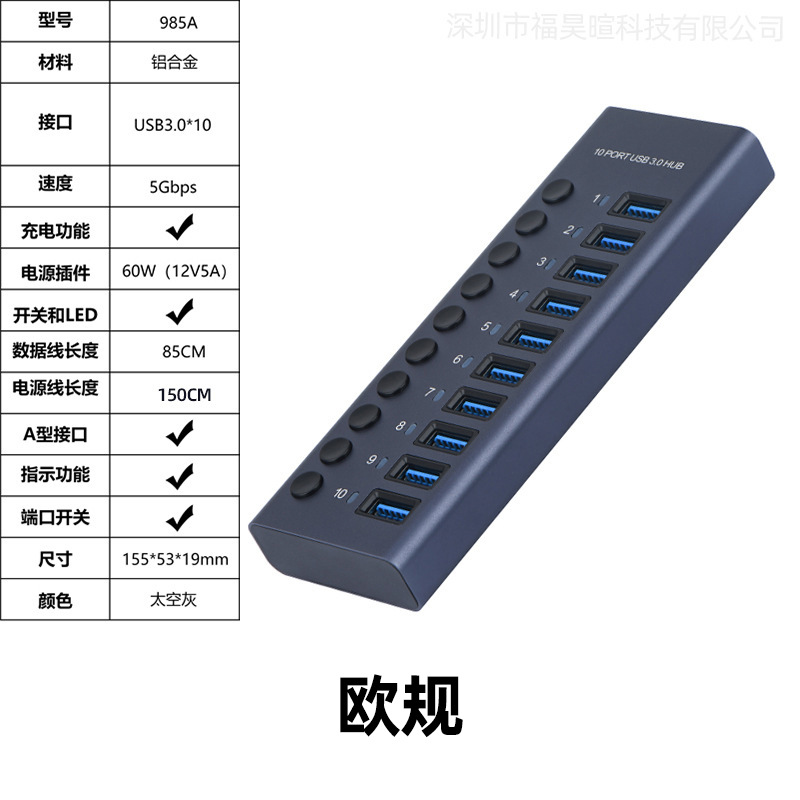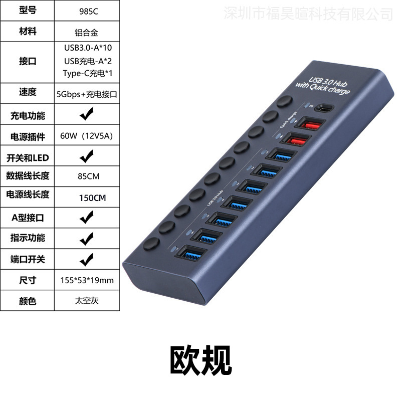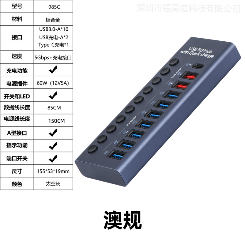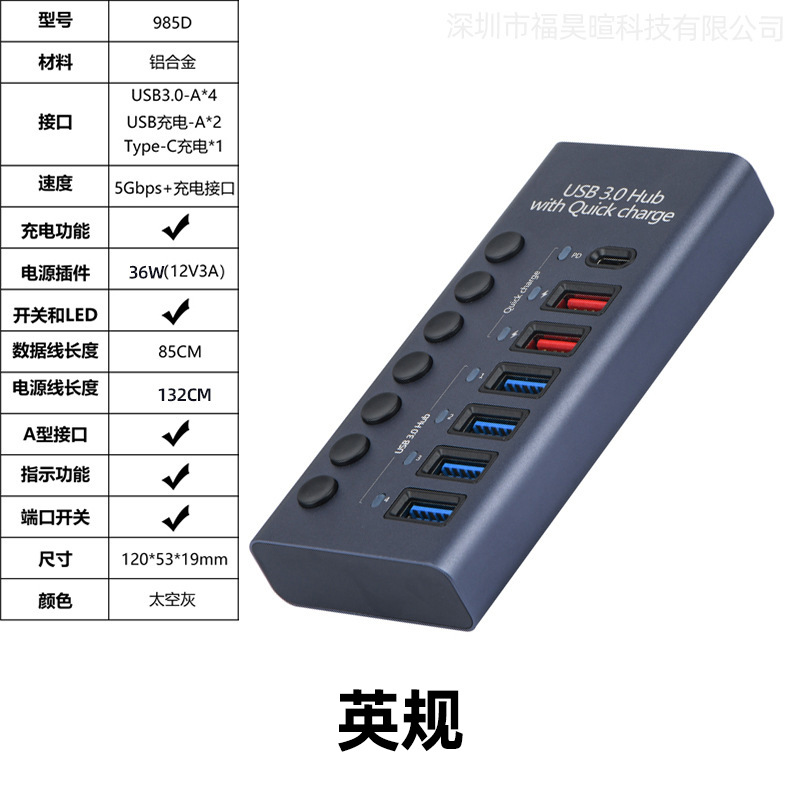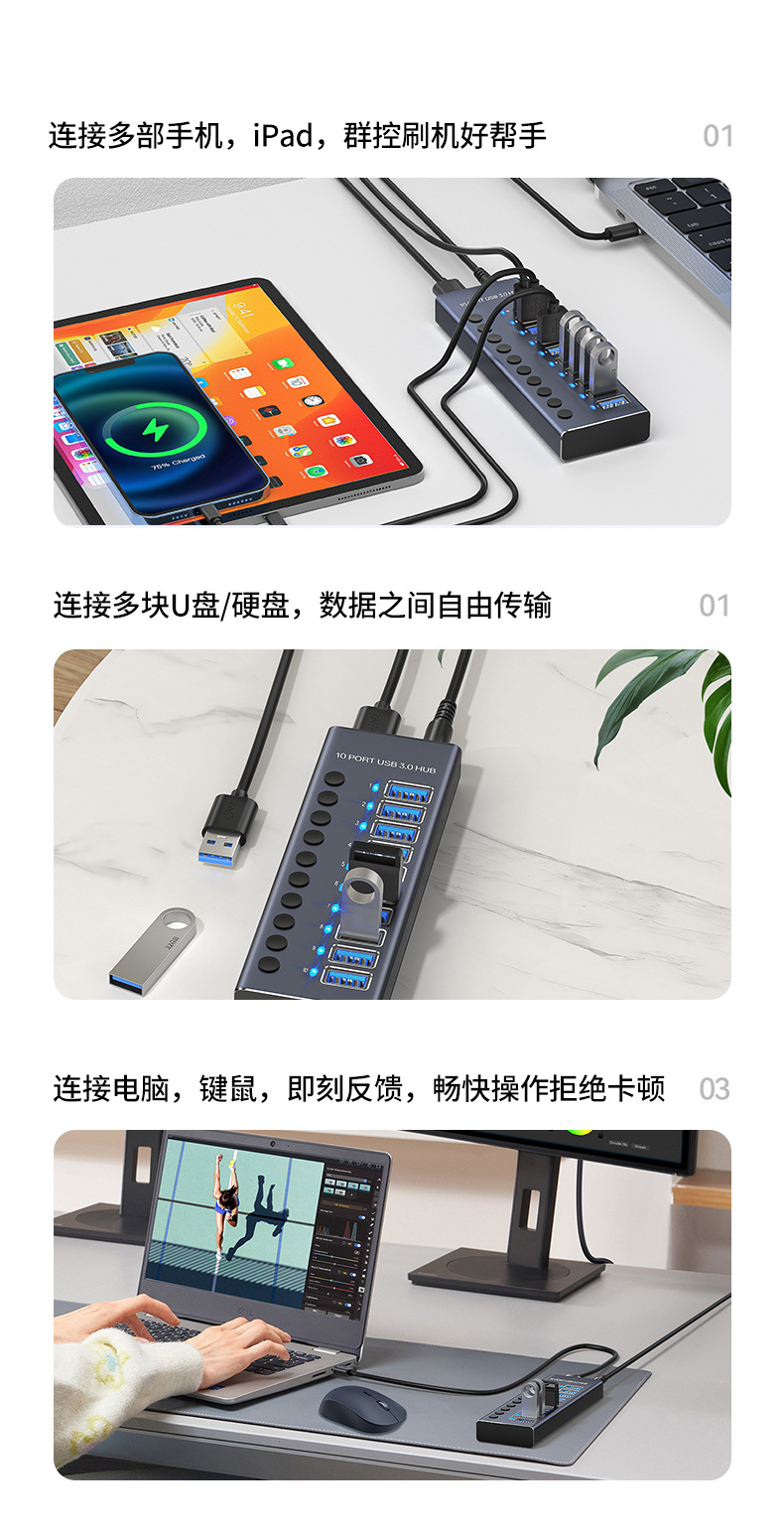 USB3.0HUB 도킹 스테이션 10포트 7포트 4포트 스위치 충전 타입-C 컴퓨터 허브 도킹 스테이션