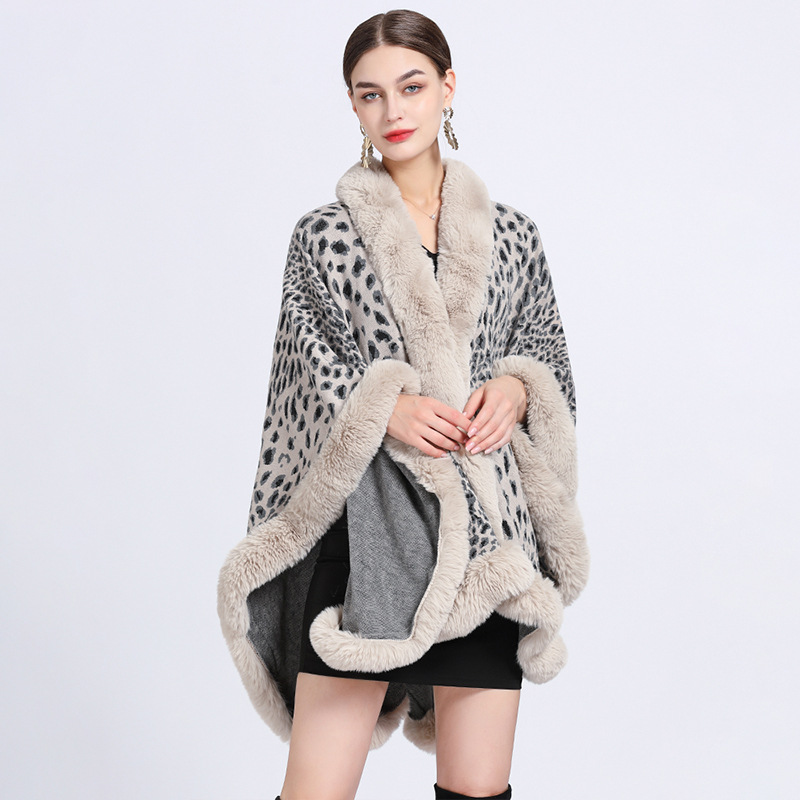 808 # 유럽과 미국 가을과 겨울 새로운 모조 렉스 토끼 모피 칼라 레오파드 무늬 자카드 목도리 케이프 플러스 사이즈 니트 카디건 코트 여성스토어 가기