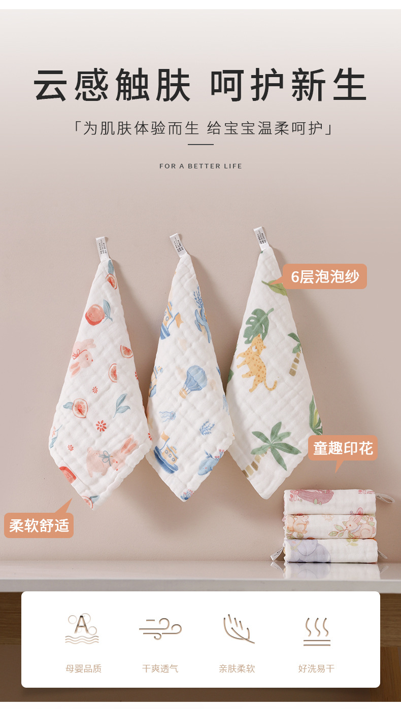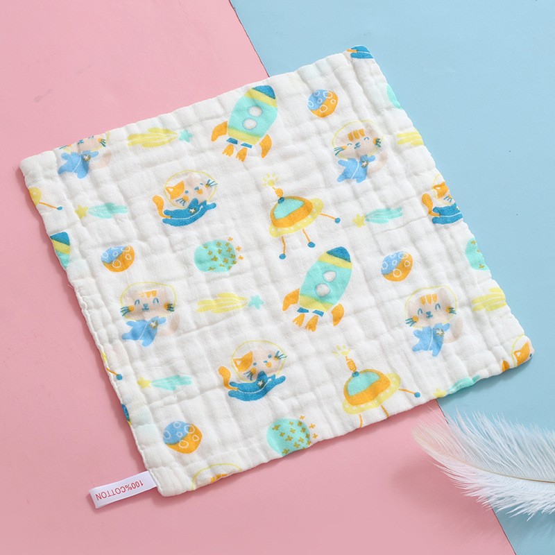 6 층 거즈 스퀘어 아기 면 얼굴 손수건 아기 타액 수건 어린이 흡수 인쇄 작은 수건 재고스토어 가기