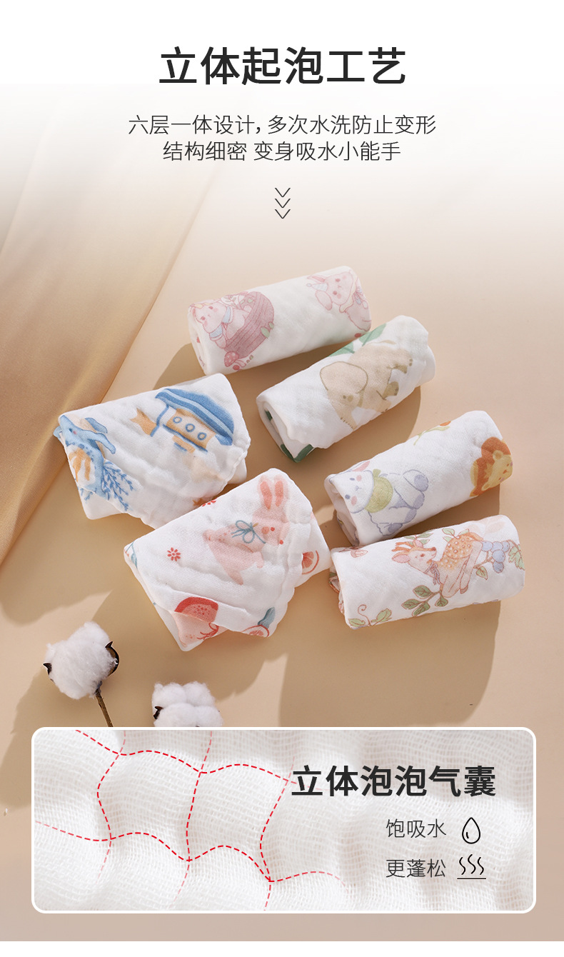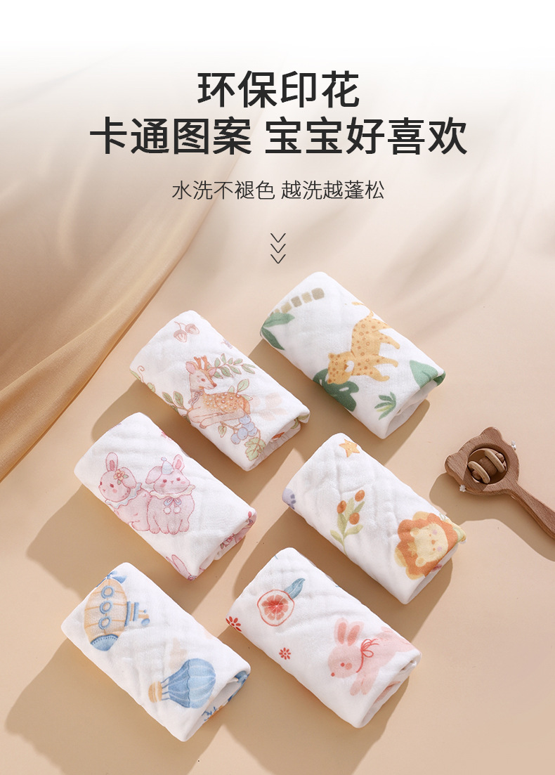 6 층 거즈 스퀘어 아기 면 얼굴 손수건 아기 타액 수건 어린이 흡수 인쇄 작은 수건 재고