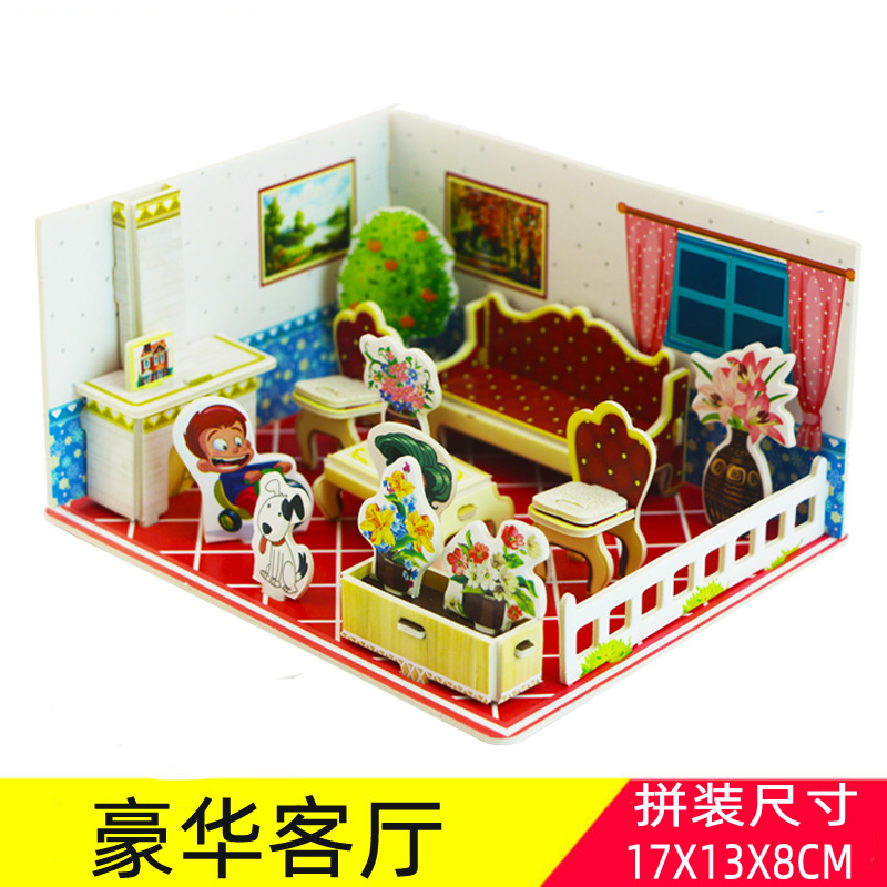 어린이 3D 스톨 스테레오 직소 퍼즐 DIY 수제 집 자동차 모델 조립 완구 조기 교육 빌딩 블록