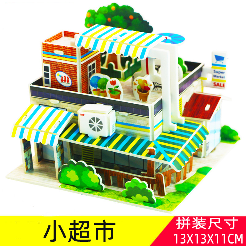 어린이 3D 스톨 스테레오 직소 퍼즐 DIY 수제 집 자동차 모델 조립 완구 조기 교육 빌딩 블록스토어 가기