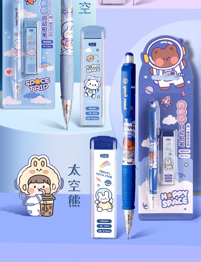 귀여운 만화 학생 소녀 새로운 Kaba 곰 흔들리는 펜 자동 연필 0.5 리필 지우개 헤드 도매