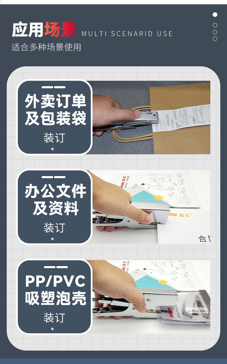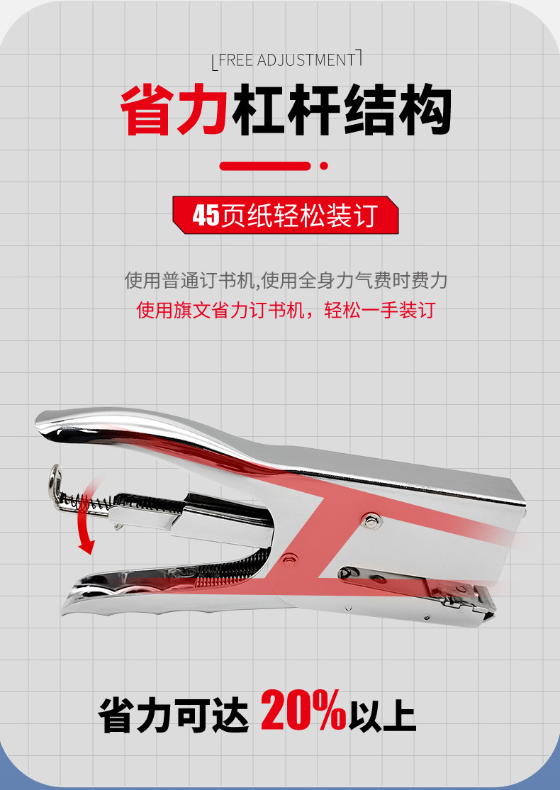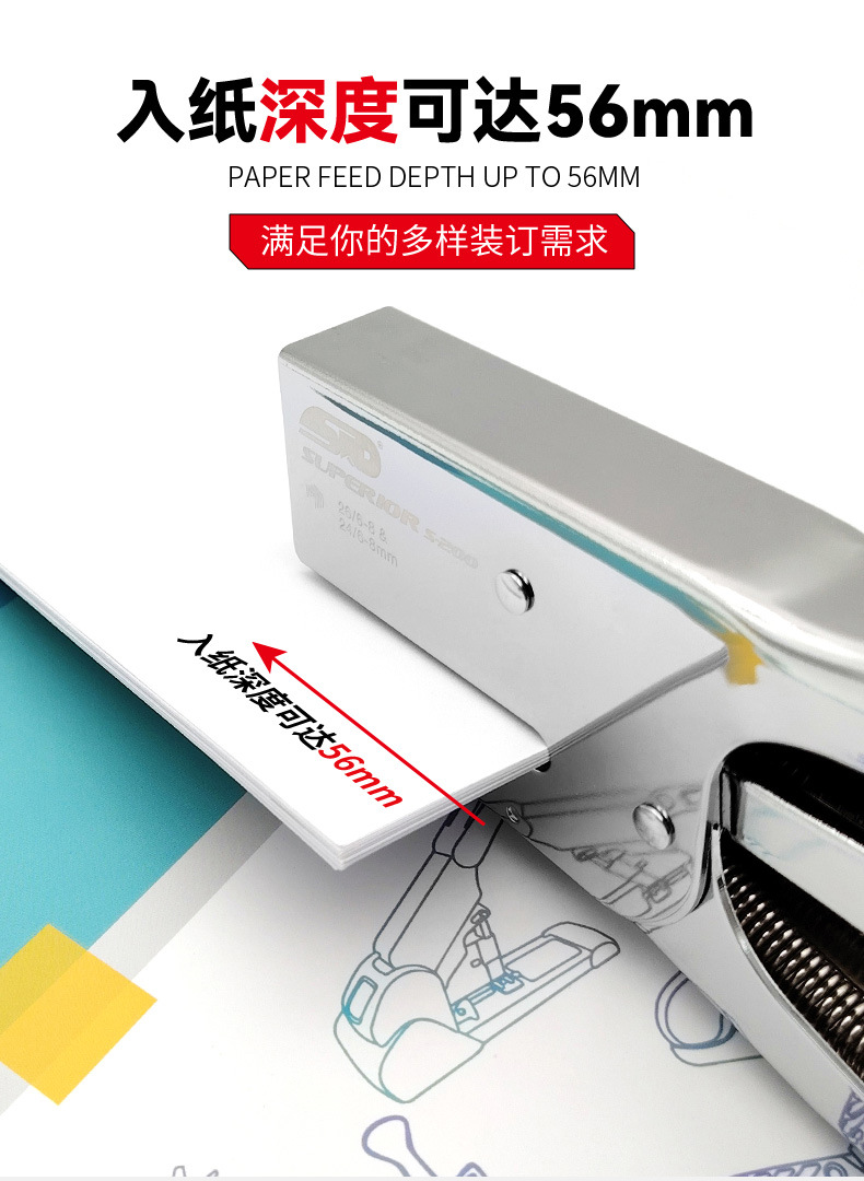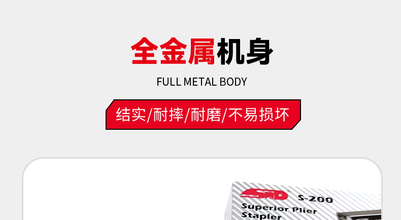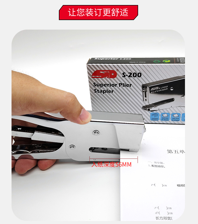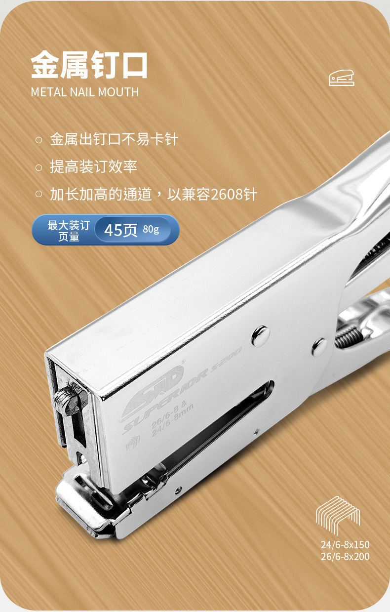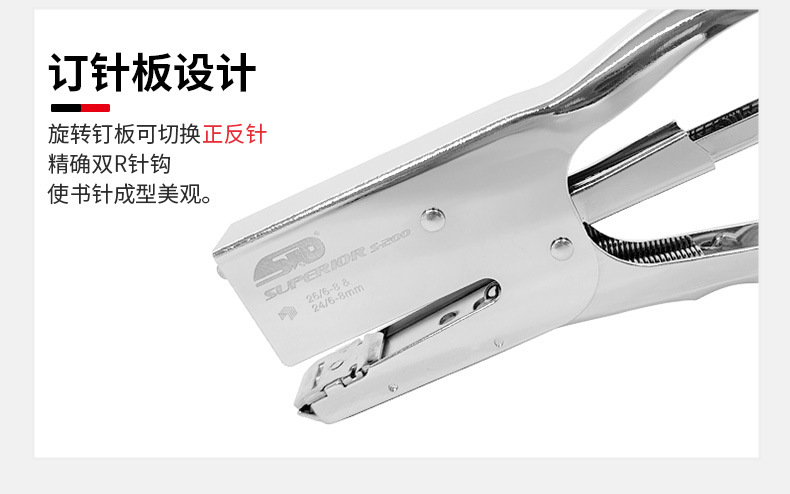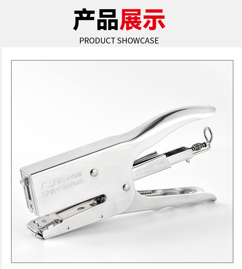 旗文S-200 두꺼운 종이용 클램프형 스테이플러 산업 표준 스테이플러 가죽 종이용 손잡이형 노동 절약 스테이플러