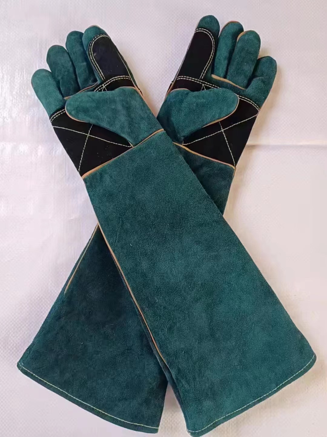 긴 60cm 용접 장갑 소 가죽 안티-scald 안티 바이트 소프트 노동 용접기 용접 장갑