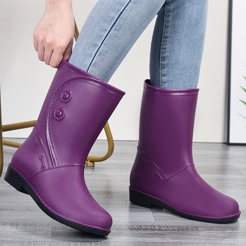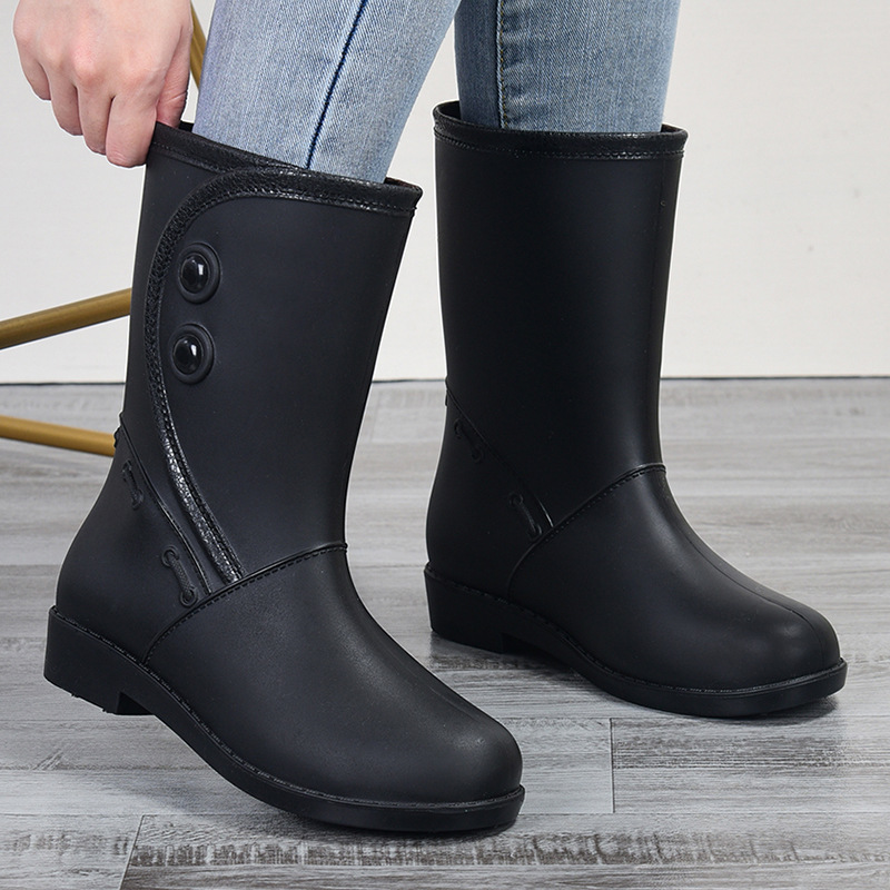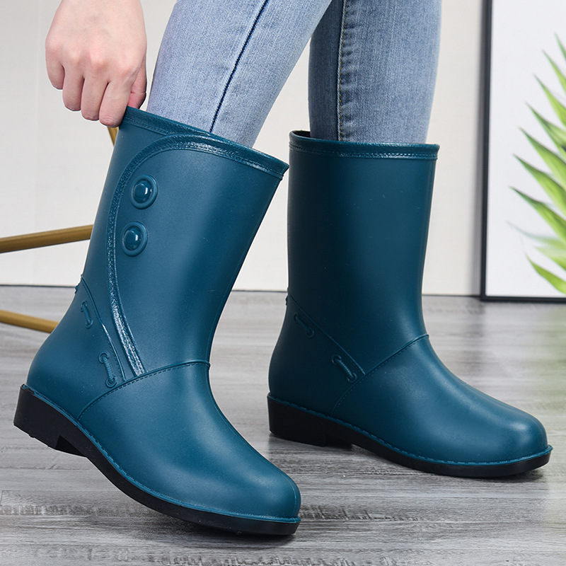 고무 장화 물 장화 중간 튜브 방수 신발 장화 물 밟기 작업 장화 여성 여름 고무 신발 성인 패션 미끄럼 방지 오버 슈즈