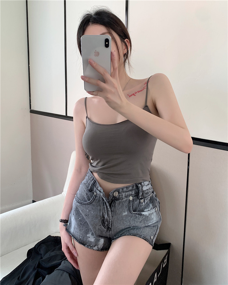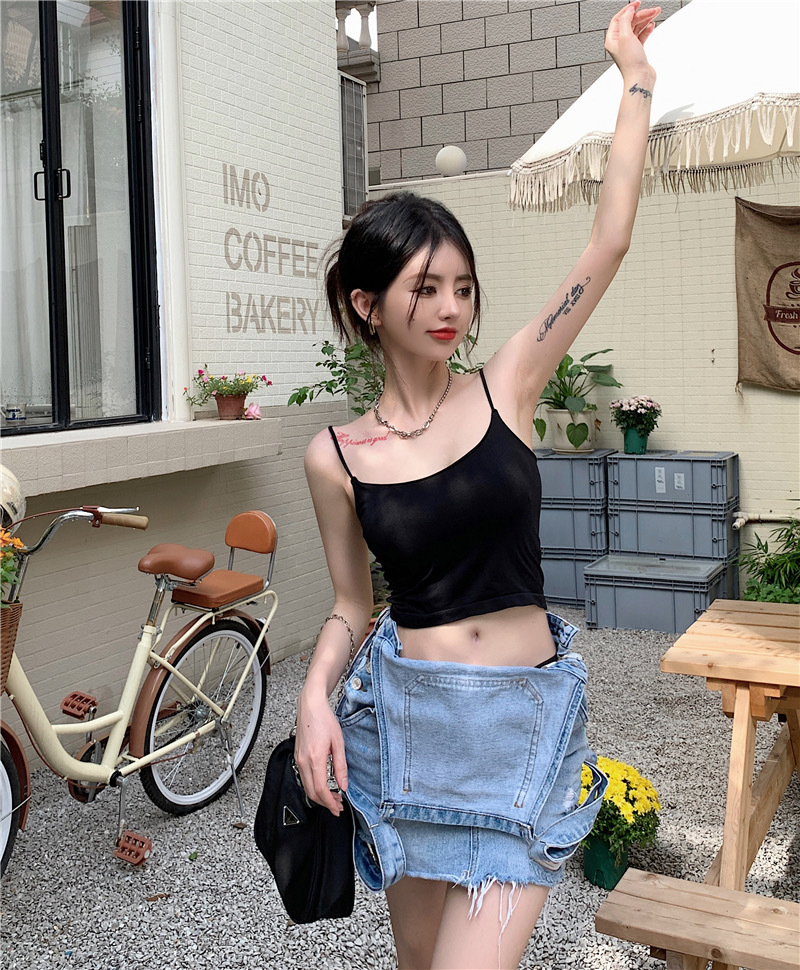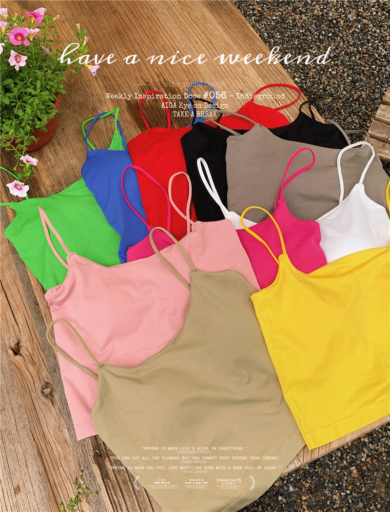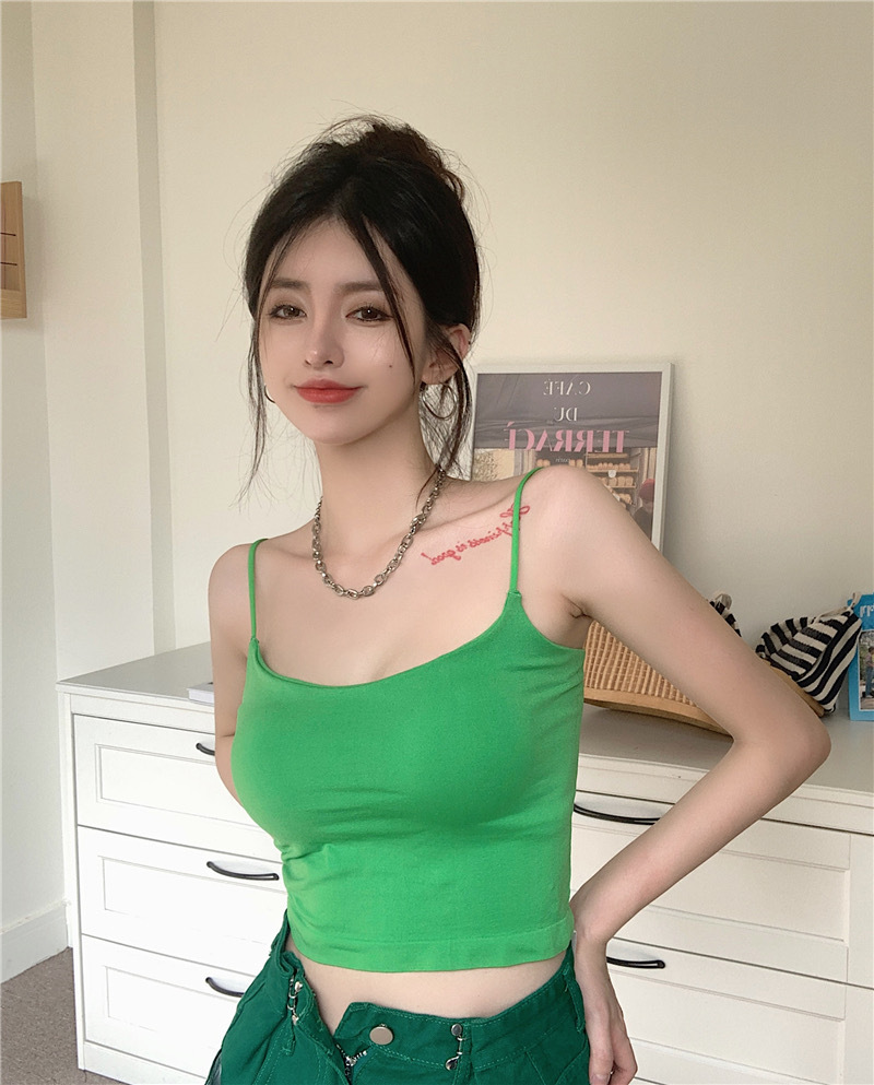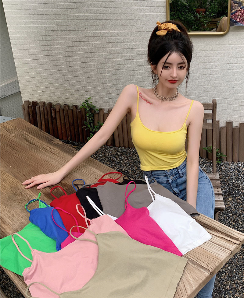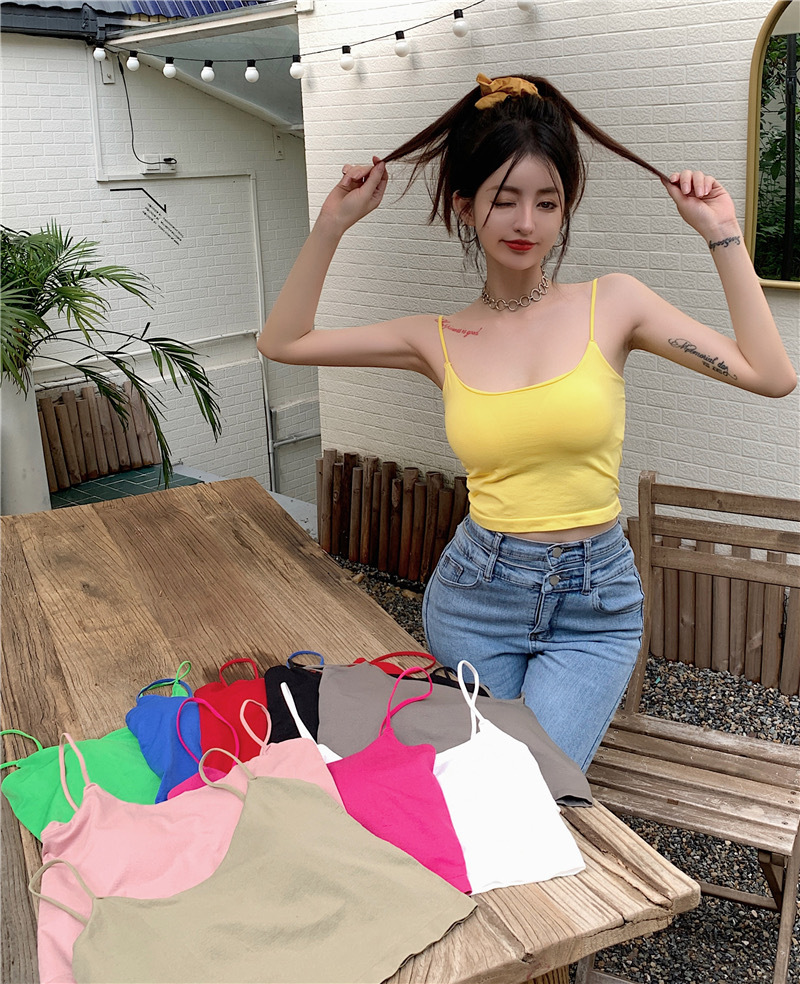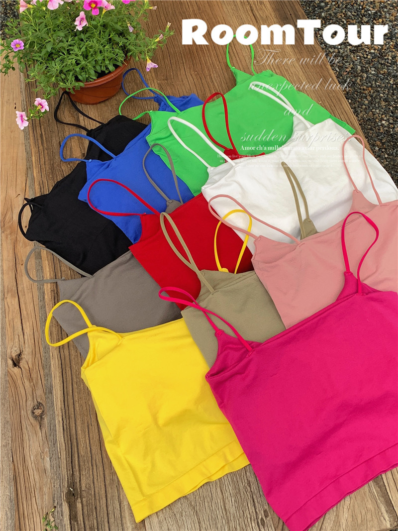 여름 단색 작은 슬링 여성 소녀 겉옷 뜨거운 소녀 섹시한 내부 짧은 탑 튜브 탑 고정 컵 아름다운 조끼스토어 가기