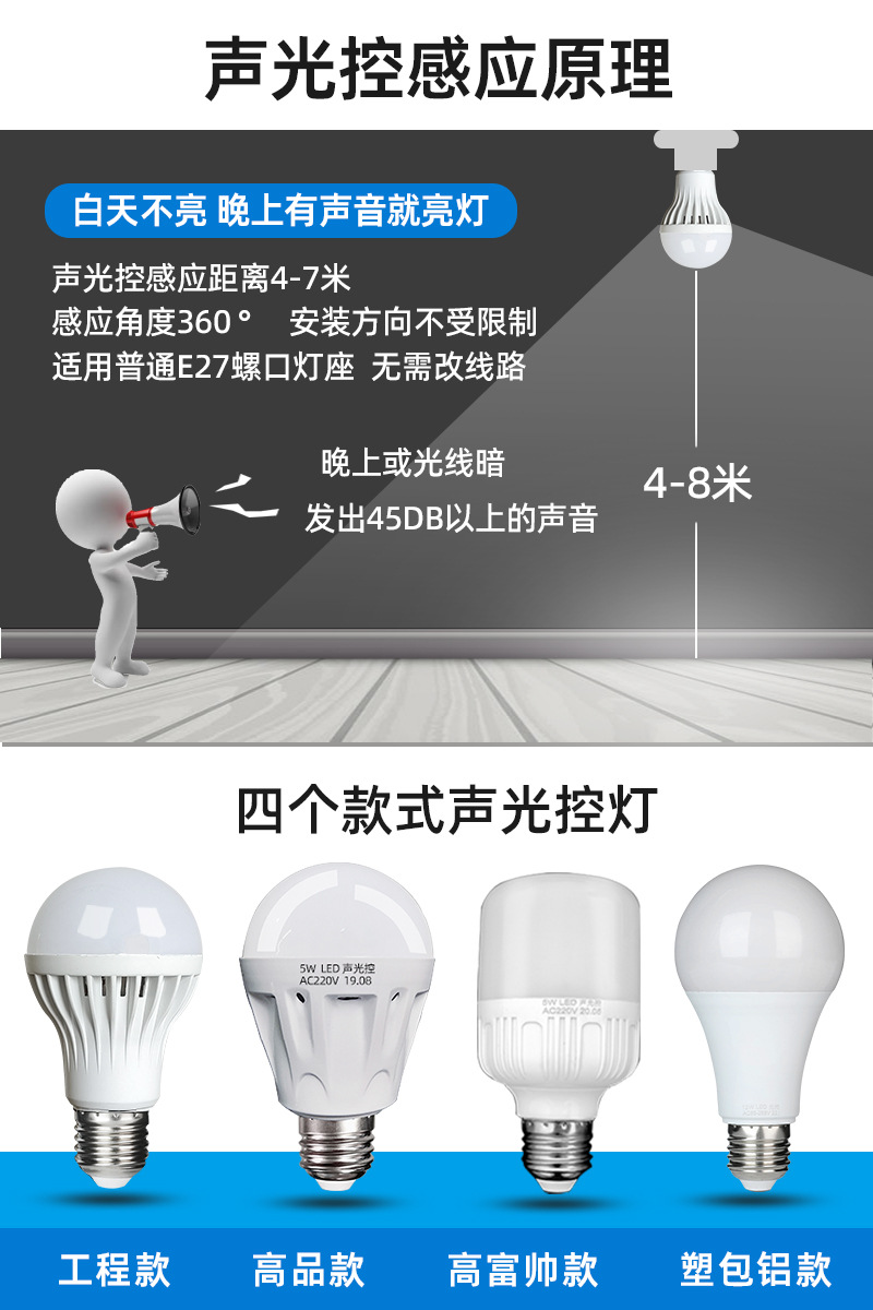 인체 유도 led 전구 빌딩 통로 레이더 유도 음성 제어 전구 도매 홈 팩토리 지원 커스터마이즈