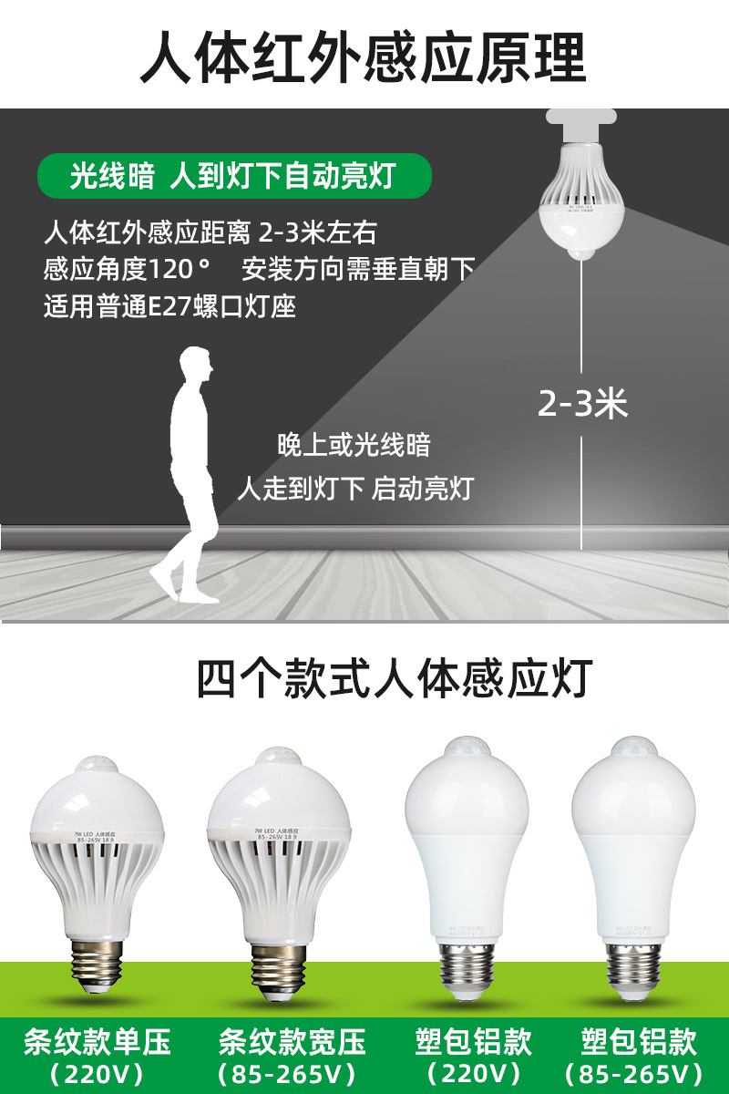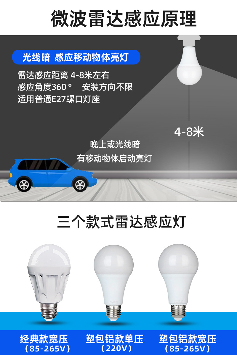 인체 유도 led 전구 빌딩 통로 레이더 유도 음성 제어 전구 도매 홈 팩토리 지원 커스터마이즈스토어 가기