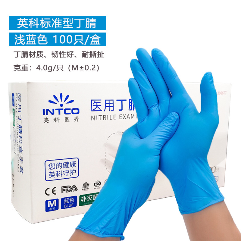 Yingke 일회용 의료 블루 화이트 검사 니트릴 장갑 남성과 여성을위한 가정 식품 등급 취사 격리 보호