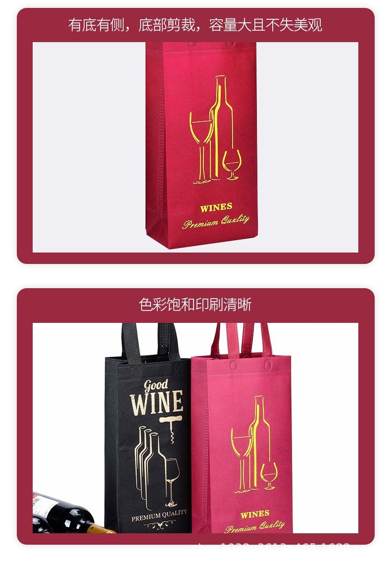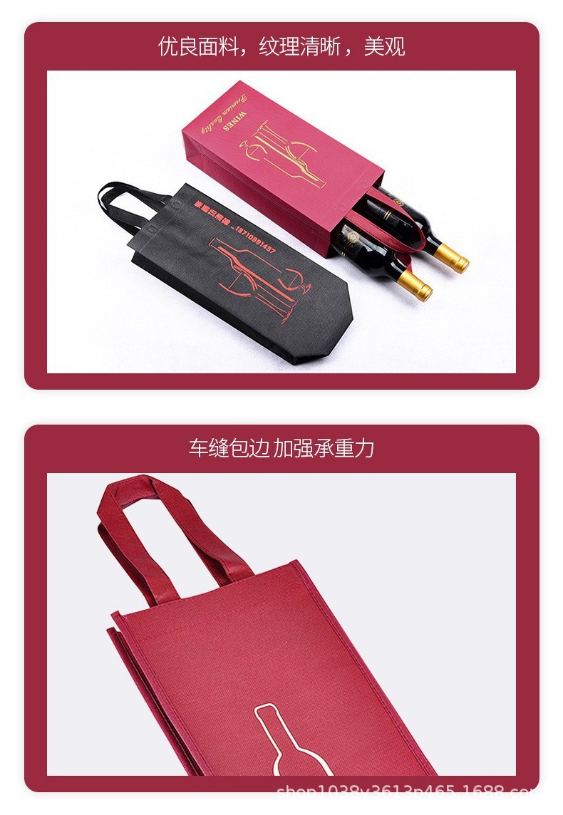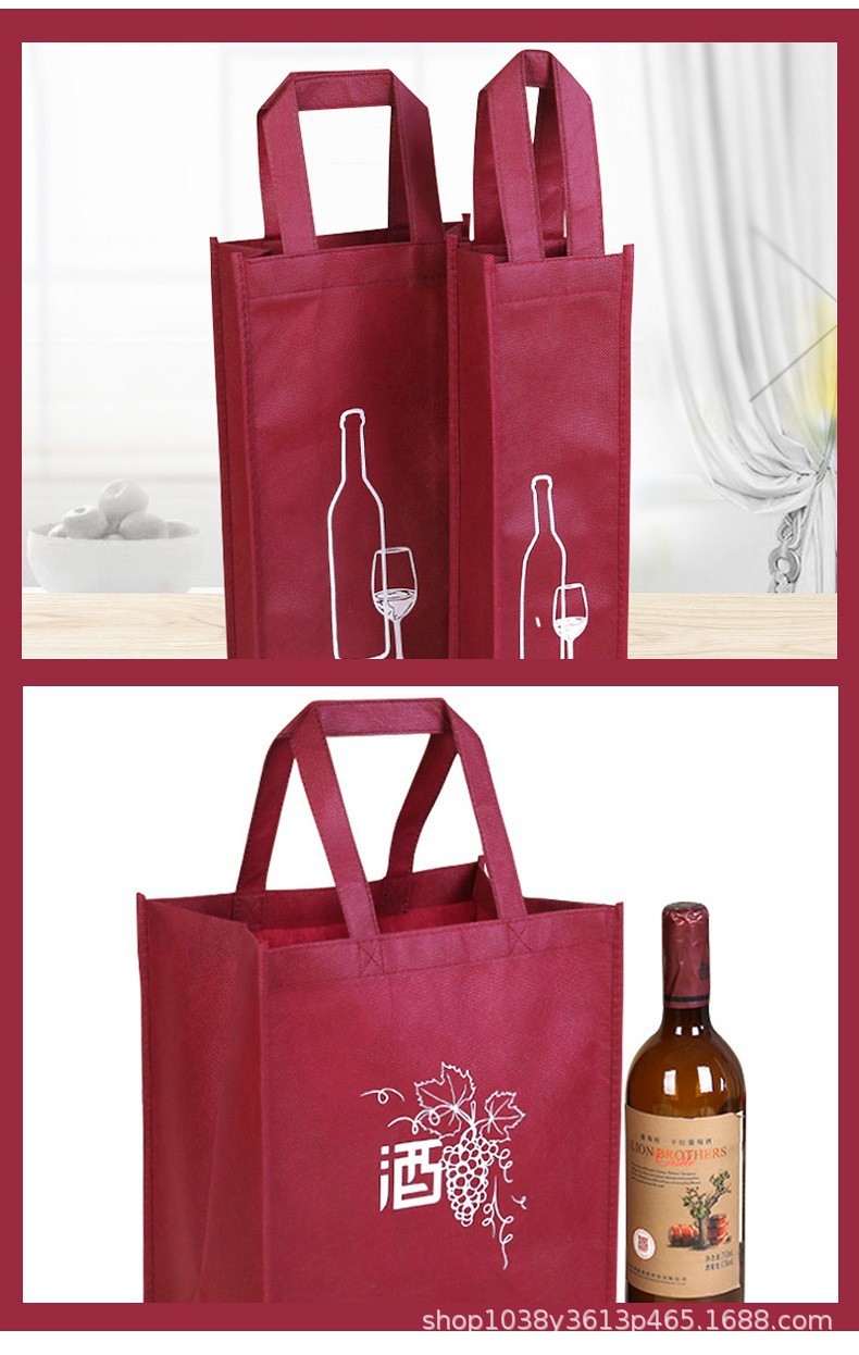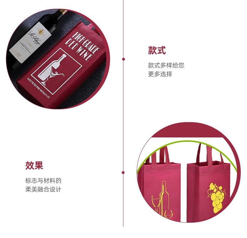 부직포 레드 와인 선물 가방 휴대용 포장 가방 저장 환경 보호 가방 빈 로고 재고 레드 와인스토어 가기