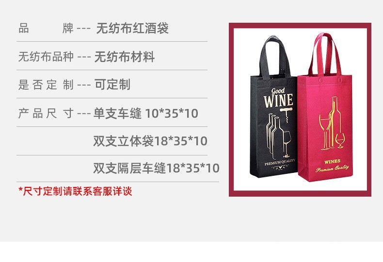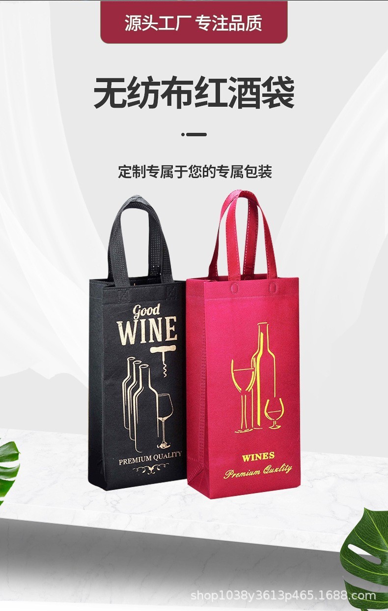 부직포 레드 와인 선물 가방 휴대용 포장 가방 저장 환경 보호 가방 빈 로고 재고 레드 와인
