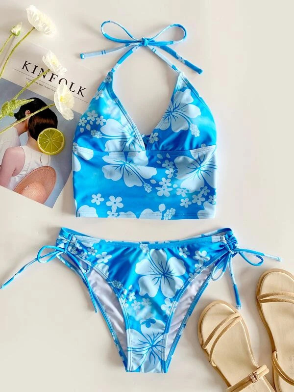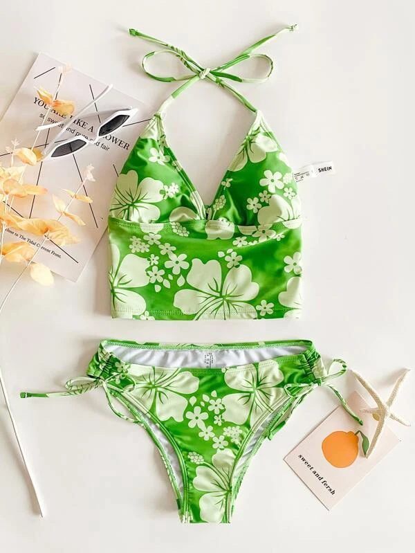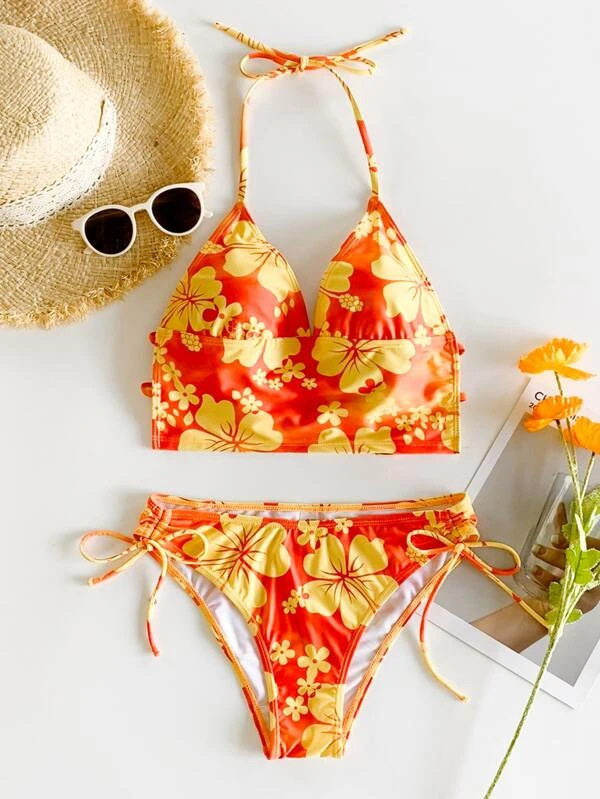 2025년 신상 유럽 및 미국 스타일 섹시 서핑 프린트 수영복, 벨리밴드 스타일 분리형 비키니 수영복, 수출용 세트(재고 있음)스토어 가기
