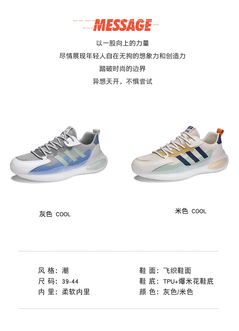라이브 팝콘 코코넛 신발 봄과 여름 메쉬 통기성 운동화 2023 캐주얼 러닝화 경량 남성 신발