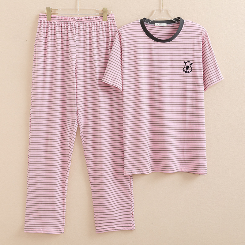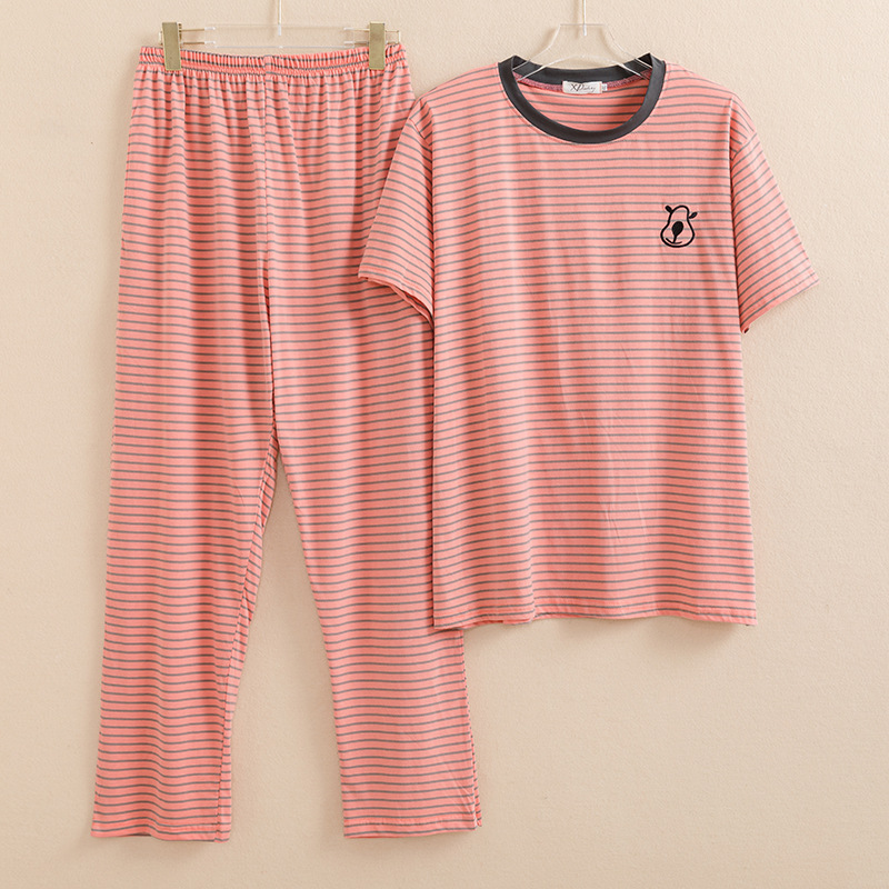 2022 년 여름 새 잠옷 캐주얼 한국식 플러스 사이즈 면 편안한 짧은 소매 바지 여성용 홈웨어 세트