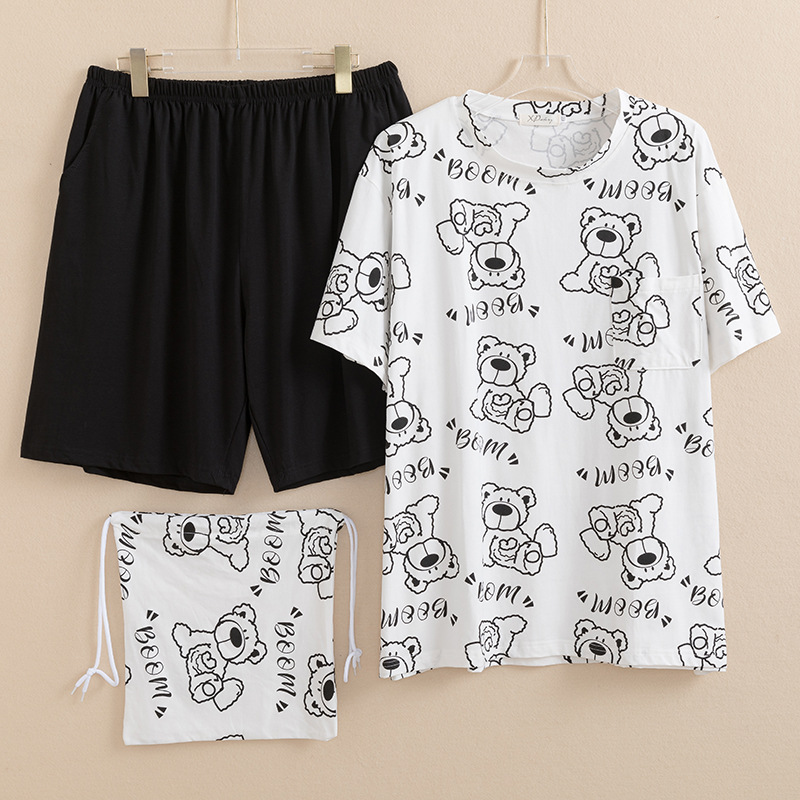 여성을위한 새로운 여름 얇은 잠옷 코튼 반팔 캐주얼 세트 한국식 플러스 사이즈 남성용 느슨한 홈 옷