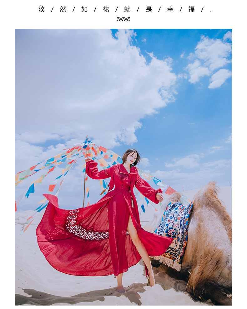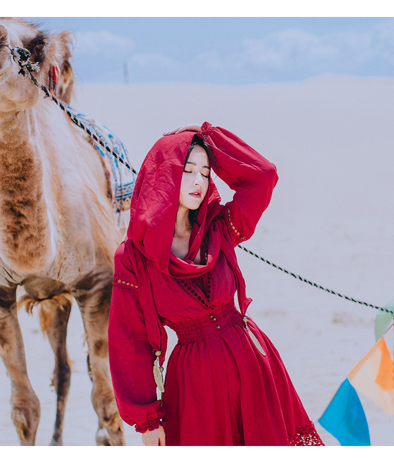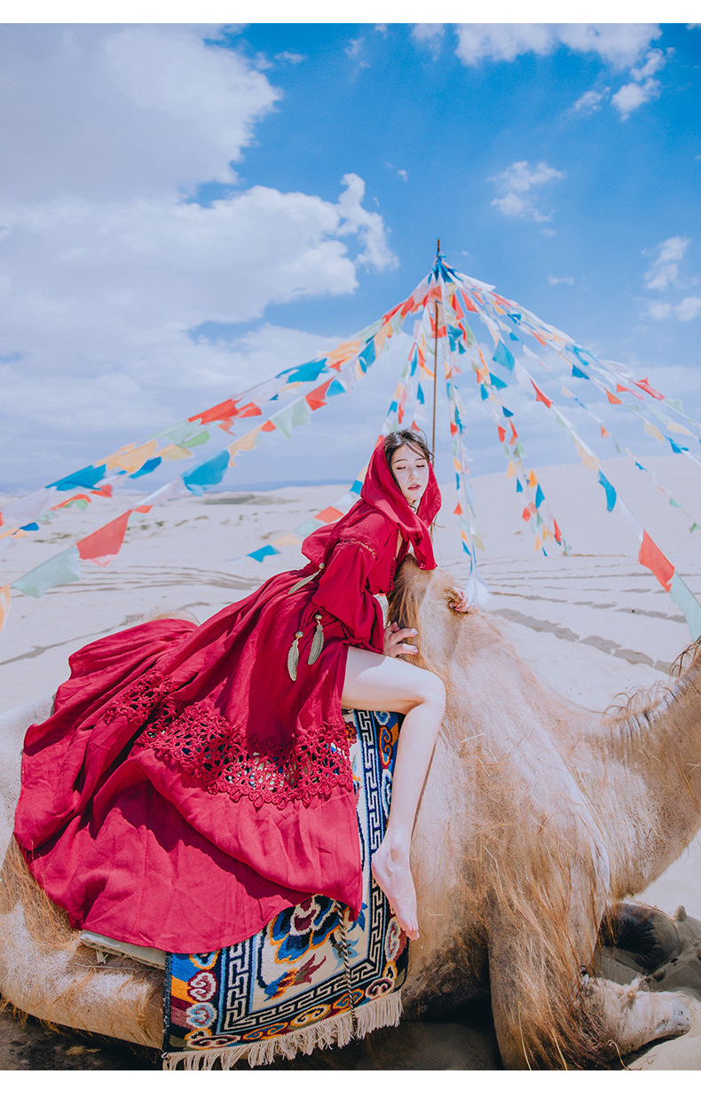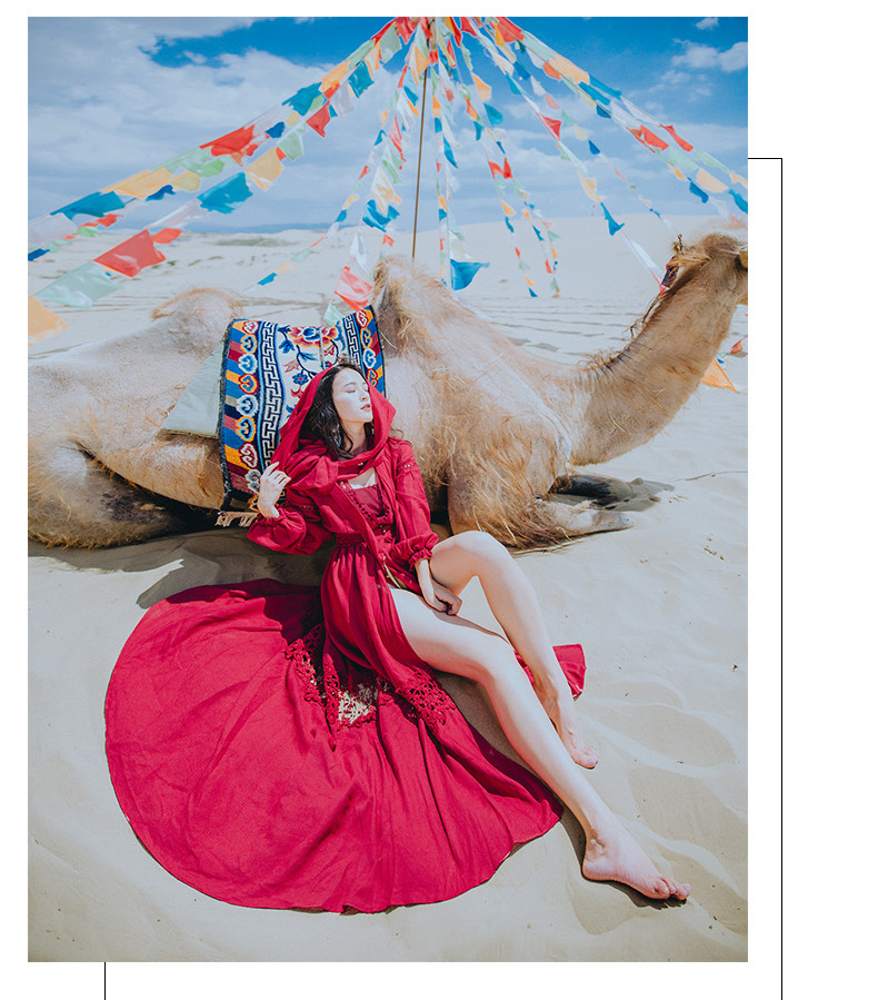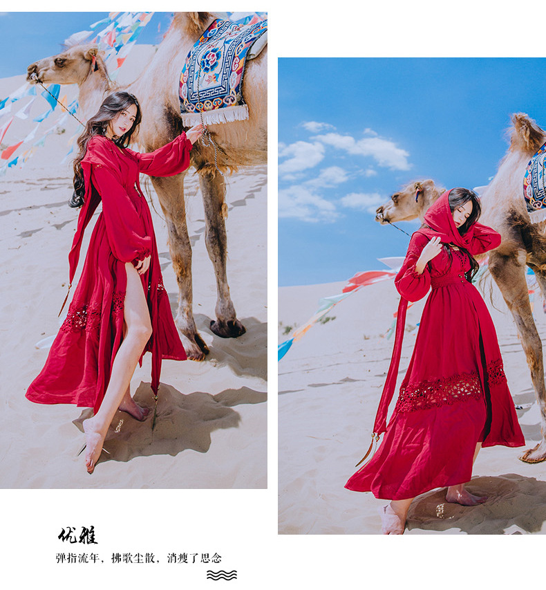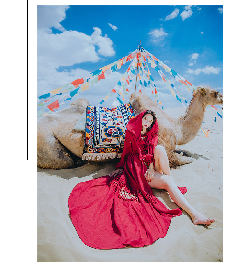 2019 이른 가을 새로운 민족 스타일 후드 초원 사막 차 카드 솔트 레이크 레드 스커트 해변 휴가 스커트 원피스