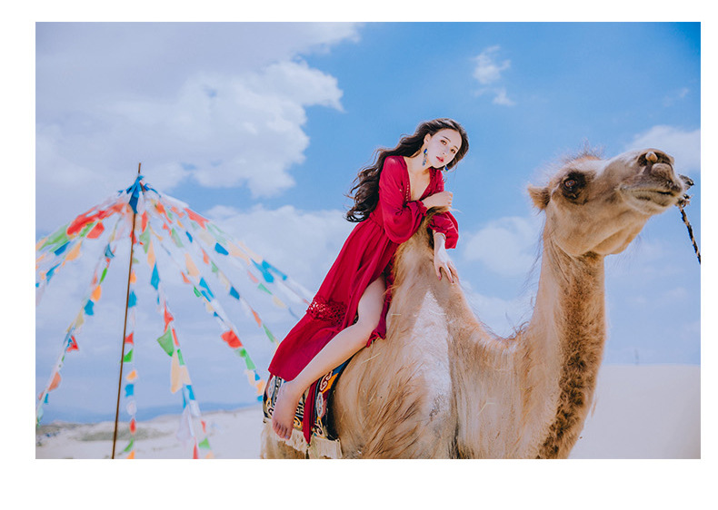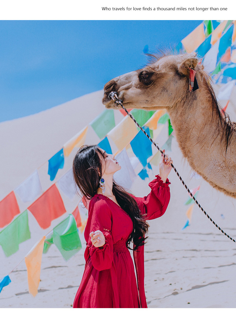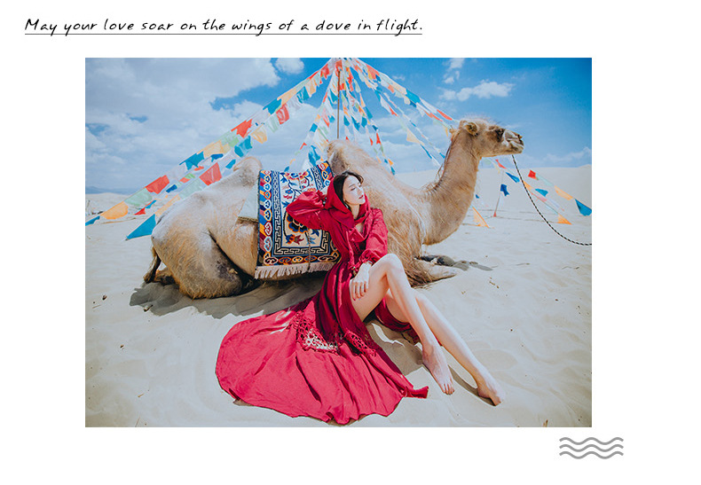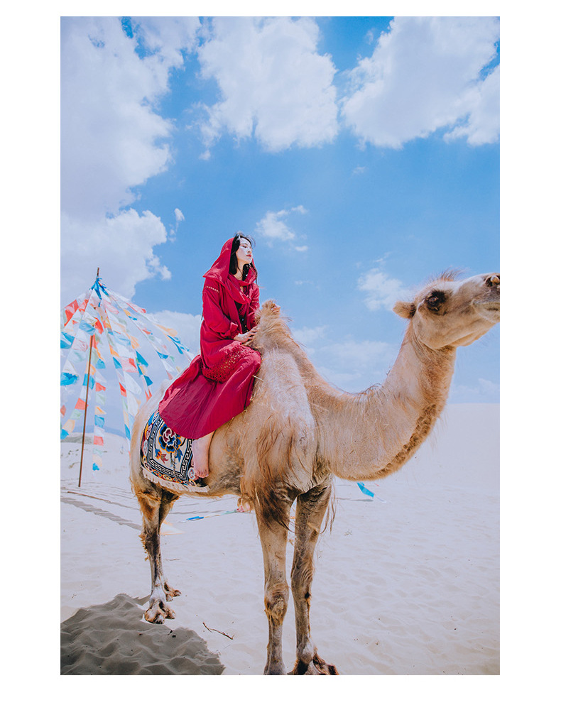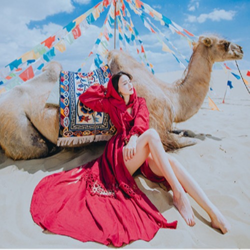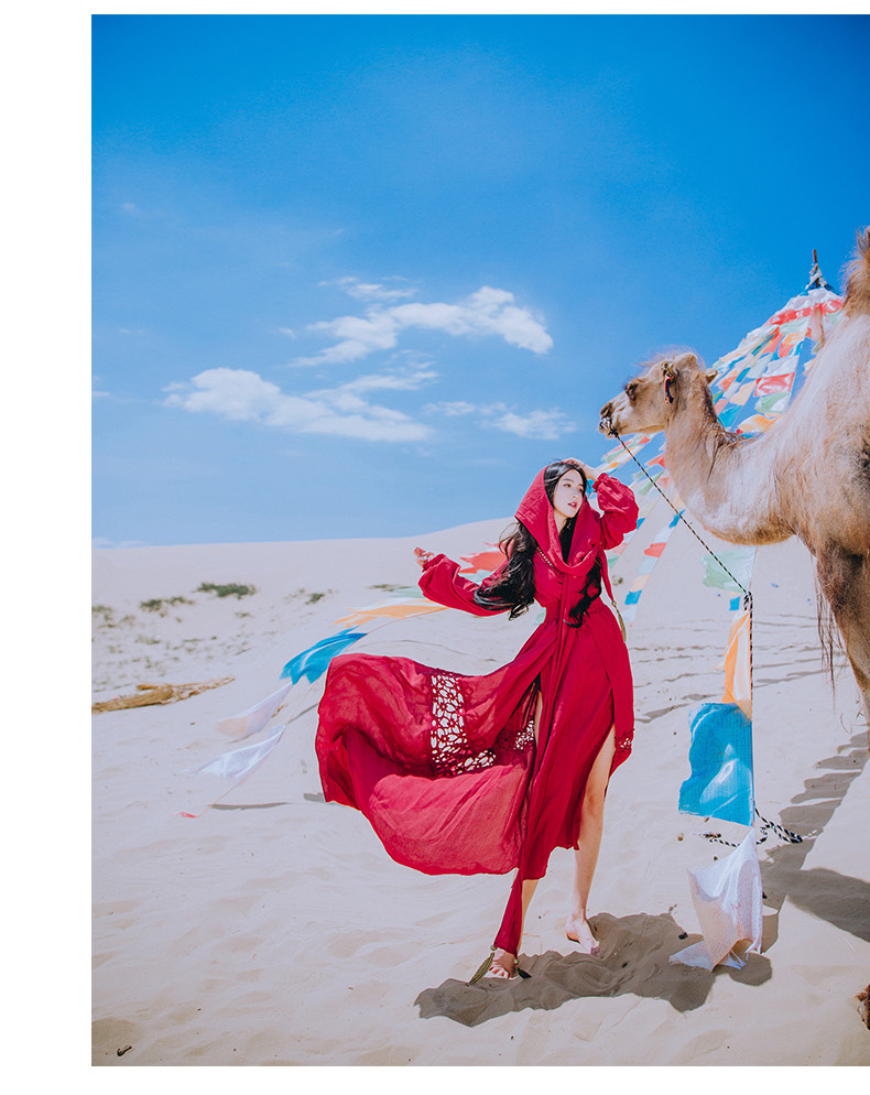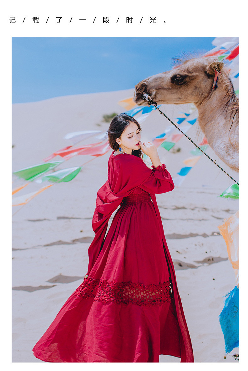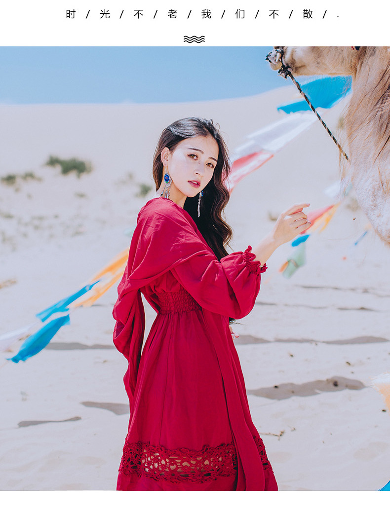 2019 이른 가을 새로운 민족 스타일 후드 초원 사막 차 카드 솔트 레이크 레드 스커트 해변 휴가 스커트 원피스
